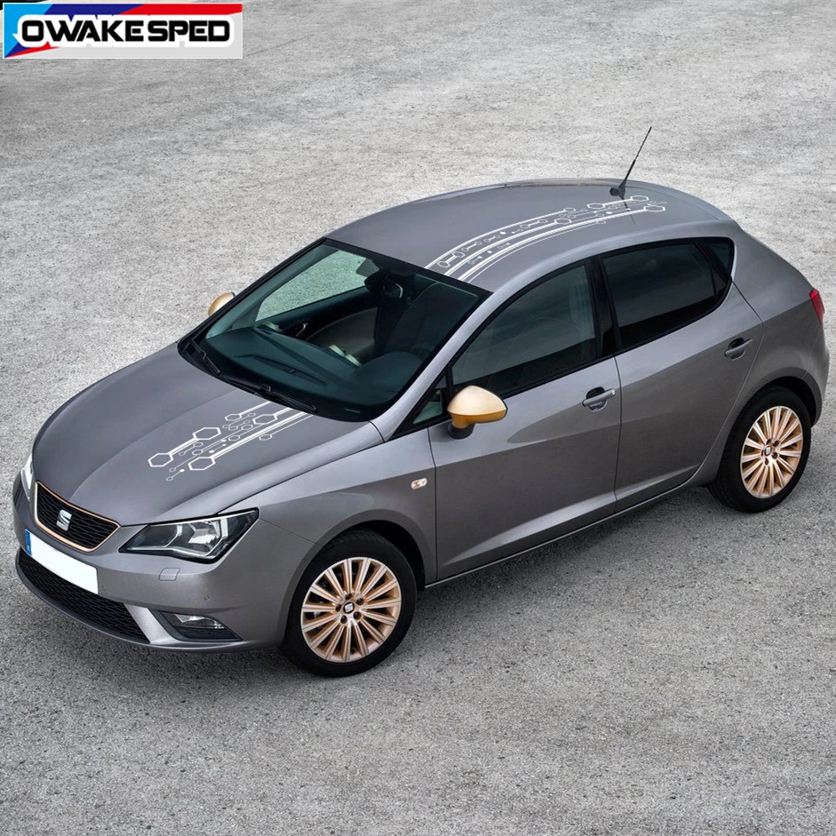 1 комплект, автомобильные Чепчики, гоночные полоски для Seat Ibiza 3-5 дверей, автомобильный капот, крыша, декоративные наклейки, автомобильный чехол, виниловые наклейки