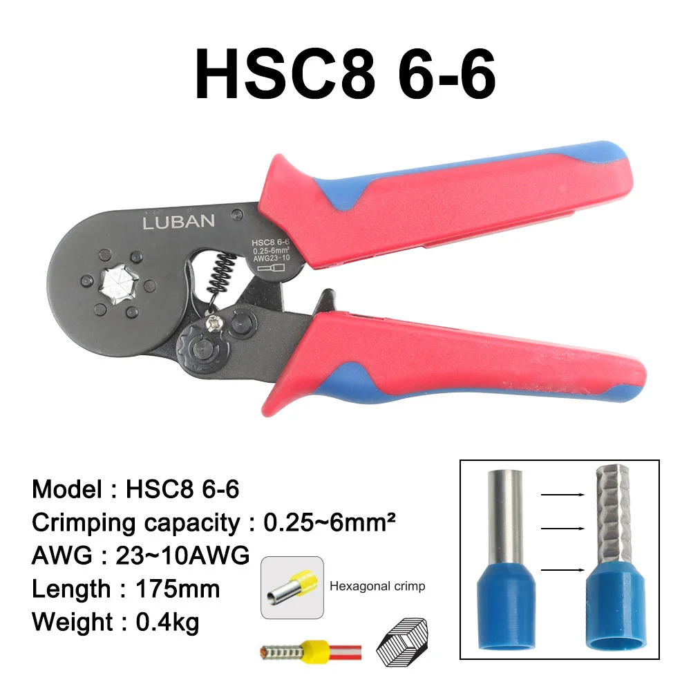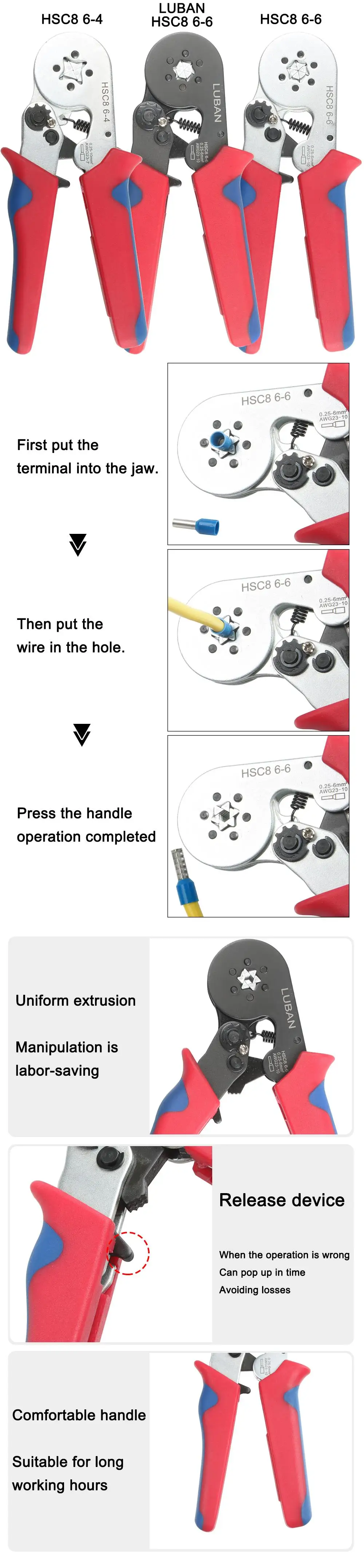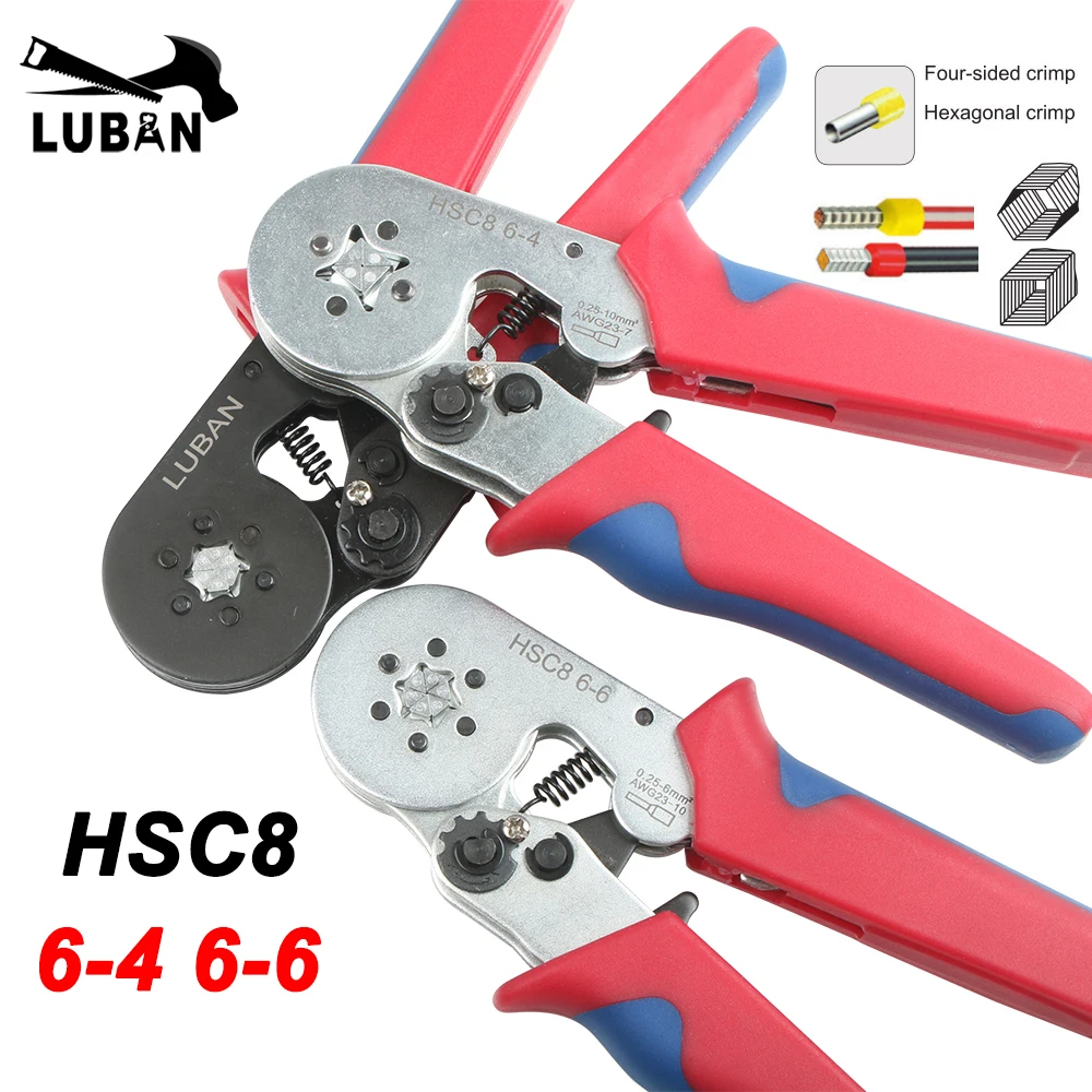 HSC8 6-4 6-6 0,25-6 мм 23-10AWG шестигранник 0,25-10 мм 23-7AWG Четырехсторонние трубчатые клещи обжимные плоскогубцы обжимные ручные инструменты