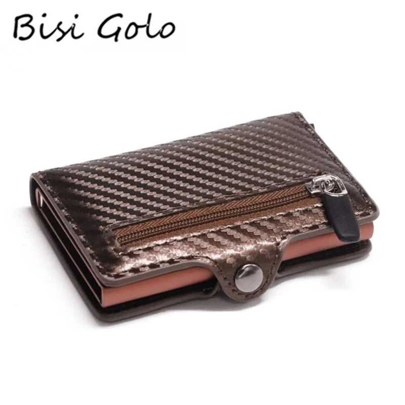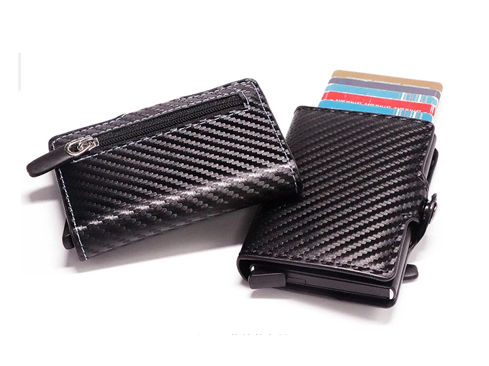 Модный мужской кошелек из углеродного волокна, держатель для кредитных карт, бумажник на молнии с кнопкой, металлический противокражный кошелек с RFID, короткий тонкий мужской кошелек Purse2021