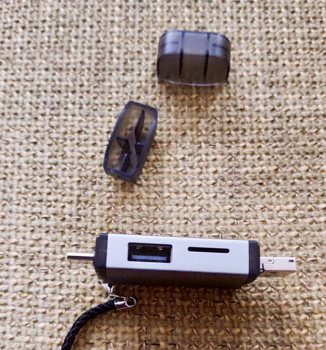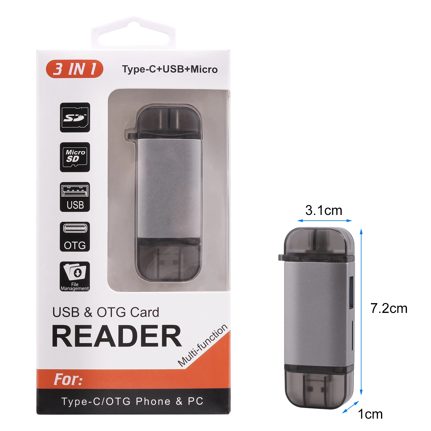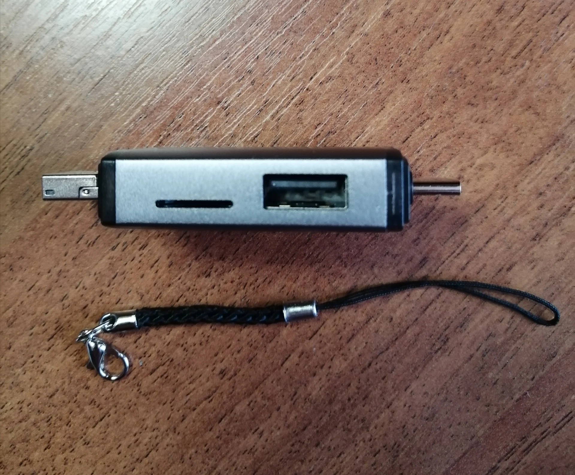 Удобный картридер. Телефоны воспринимают отлично как через type-c, так и через micro usb. Через USB можно подключать не только флешки, клавиатура и мышь через хаб заработали отлично. Сразу 2 флешки, microSD и SD например, не читает, но я особо и не надеялся на это. Скорость низковата, кто хочет шустрый, смотрите 3.0 Немного великоват для ношения в кошельке. Дошло до мск за 2 недели.