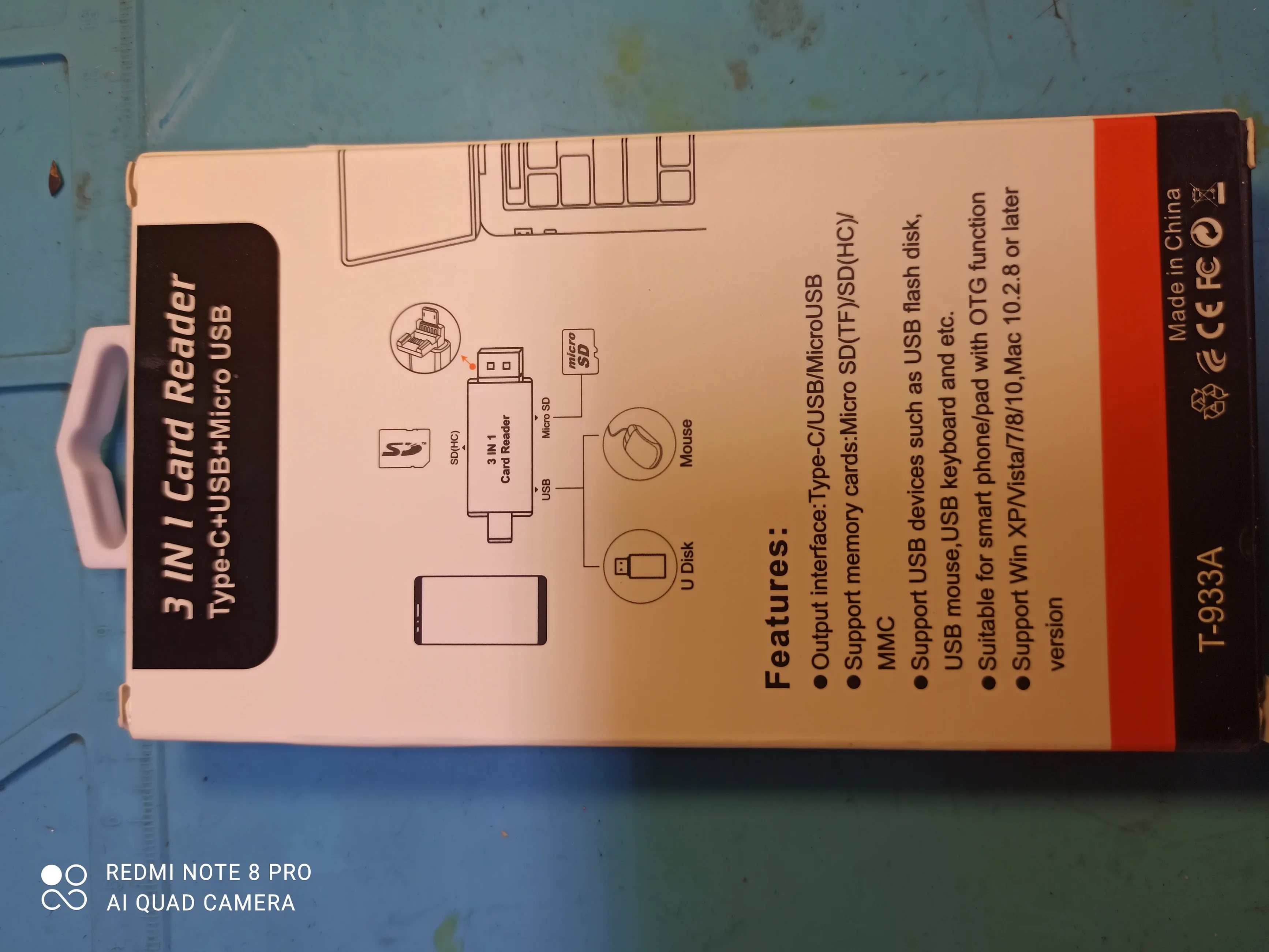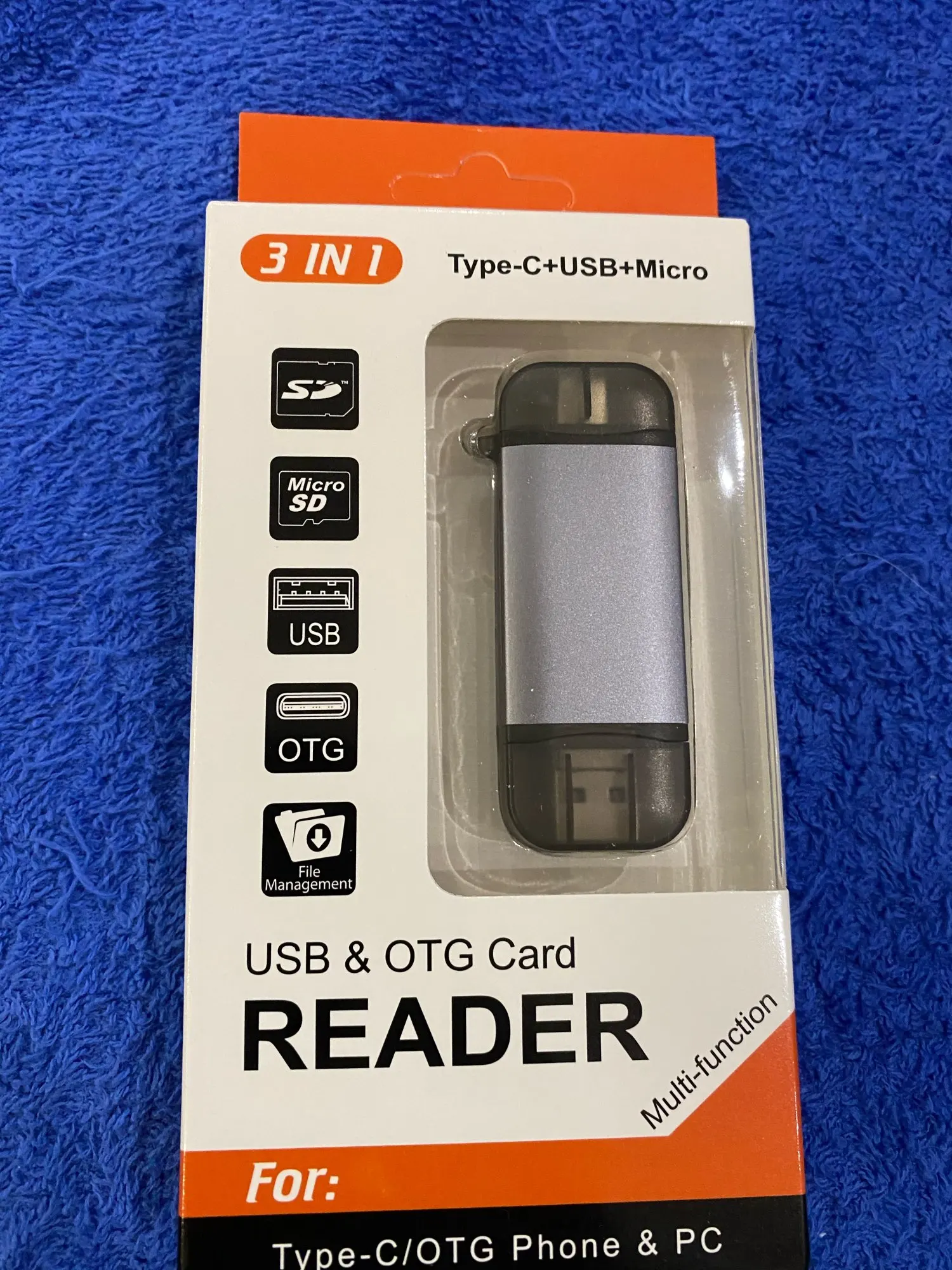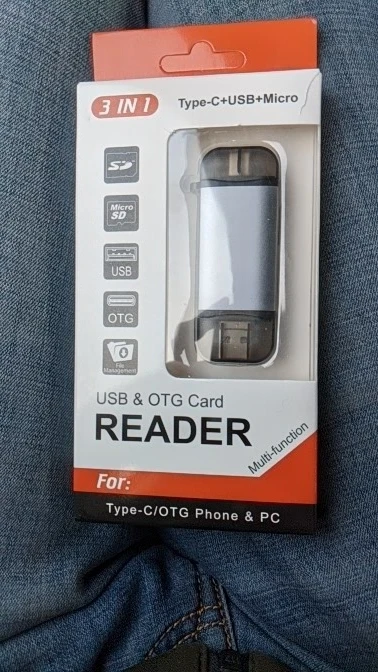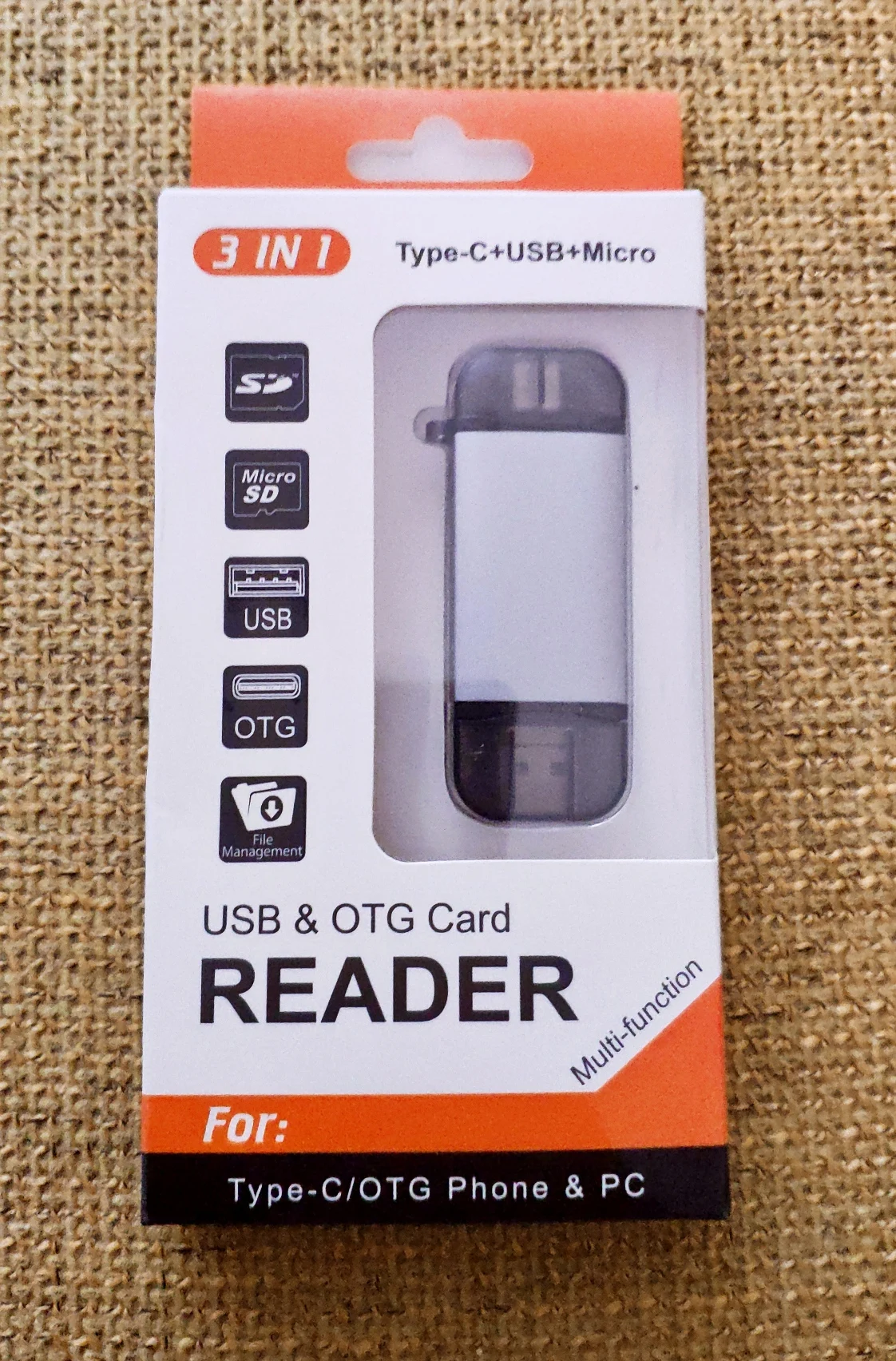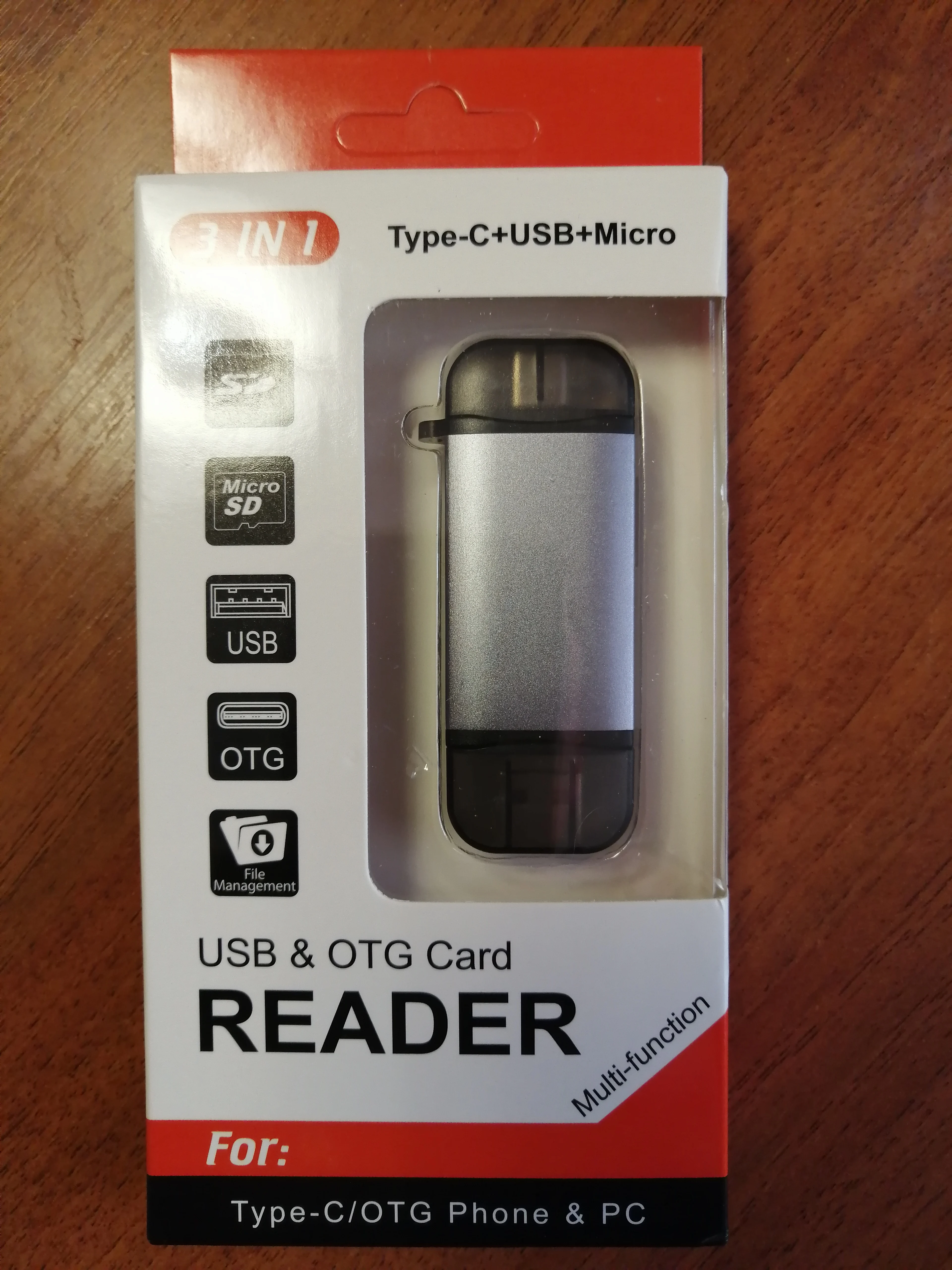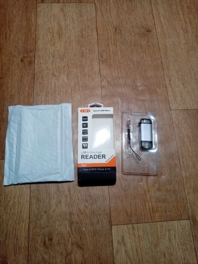 Получил картридер, пришёл в фирменной коробке, по качеству на 4+,в комплекте была верёвочка что не потерять, подключил к смартфону по Type C, все работает, спасибо продавцу .