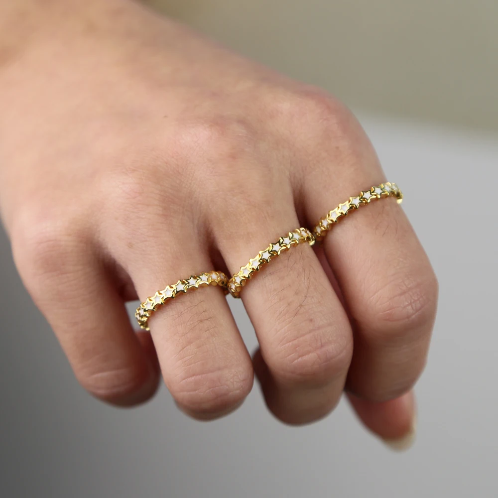 2021 Рождественский Подарок Золотое эмалированное кольцо белого цвета со звездой Модная европейская Штабелируемая лента вечность Модные женские ювелирные изделия