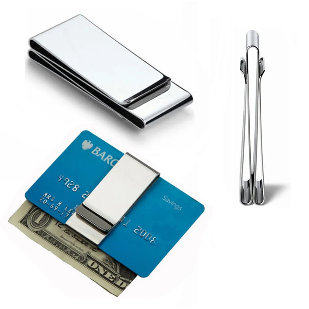 Тонкий двухсторонний зажим для денег из нержавеющей стали, металлический зажим для банкнот, бумажник для кредитных карт, зажим для визиток, сверхтонкий стальной зажим