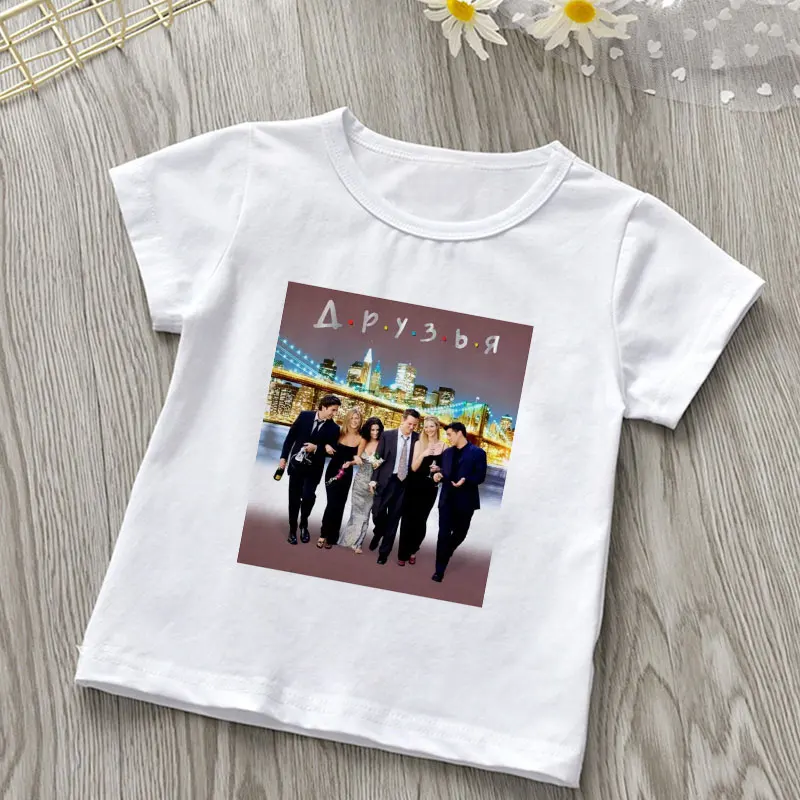 Новое поступление, повседневные Мультяшные футболки для маленьких девочек, футболка с коротким рукавом для мальчиков, Забавная детская футболка с принтом лучшего друга, милые футболки в стиле Харадзюку