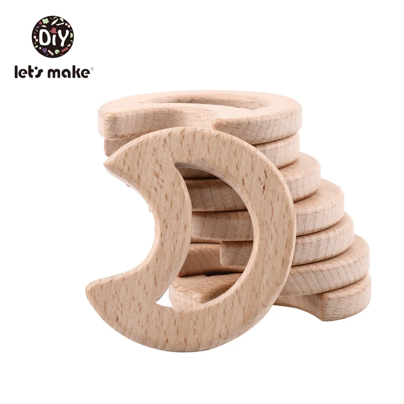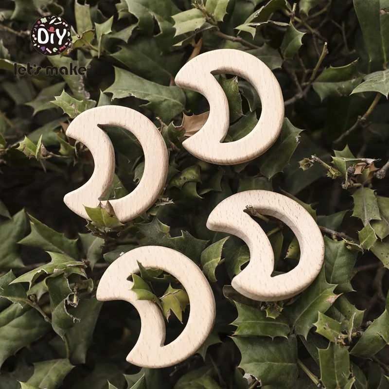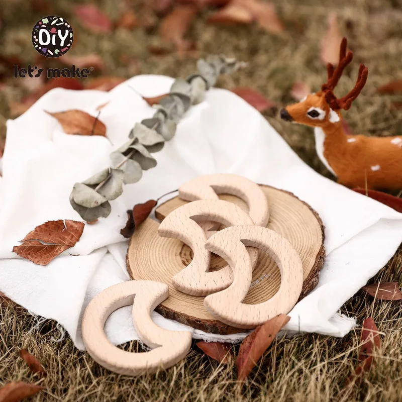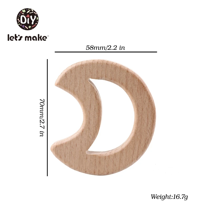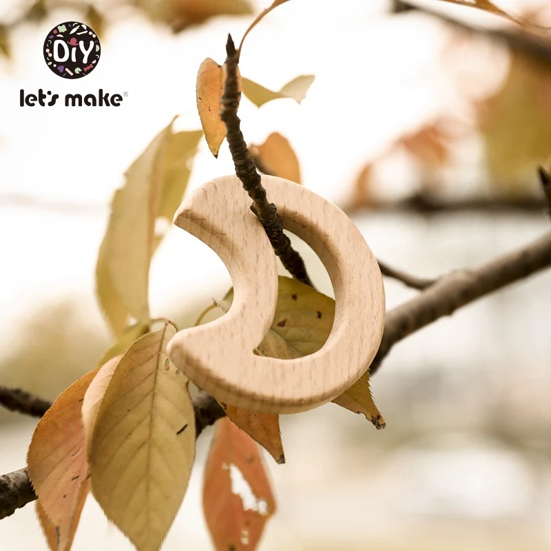 Деревянный Прорезыватель для зубов Let's Make, 1 шт., не содержит бисфенола А, кулон в форме Луны для прорезывания зубов, цепочка для детских прорезывателей из бука