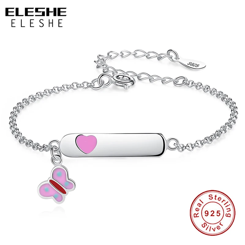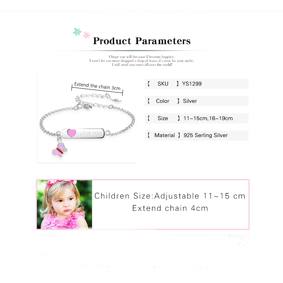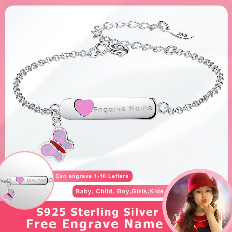 Персонализированный браслет с именем из стерлингового серебра 925 пробы, розовая цепь с плетением бабочка, браслет для маленьких девочек, детская бижутерия, рождественский подарок