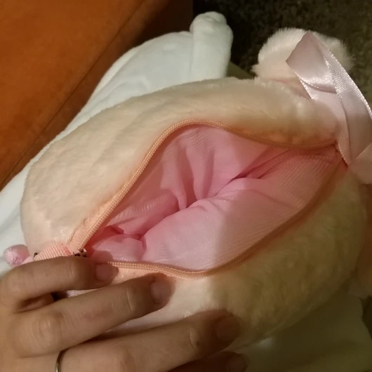 Он милый и очень мягкий и выглядит так же, как на картинке, но молния работает очень плохо, не будет закрываться