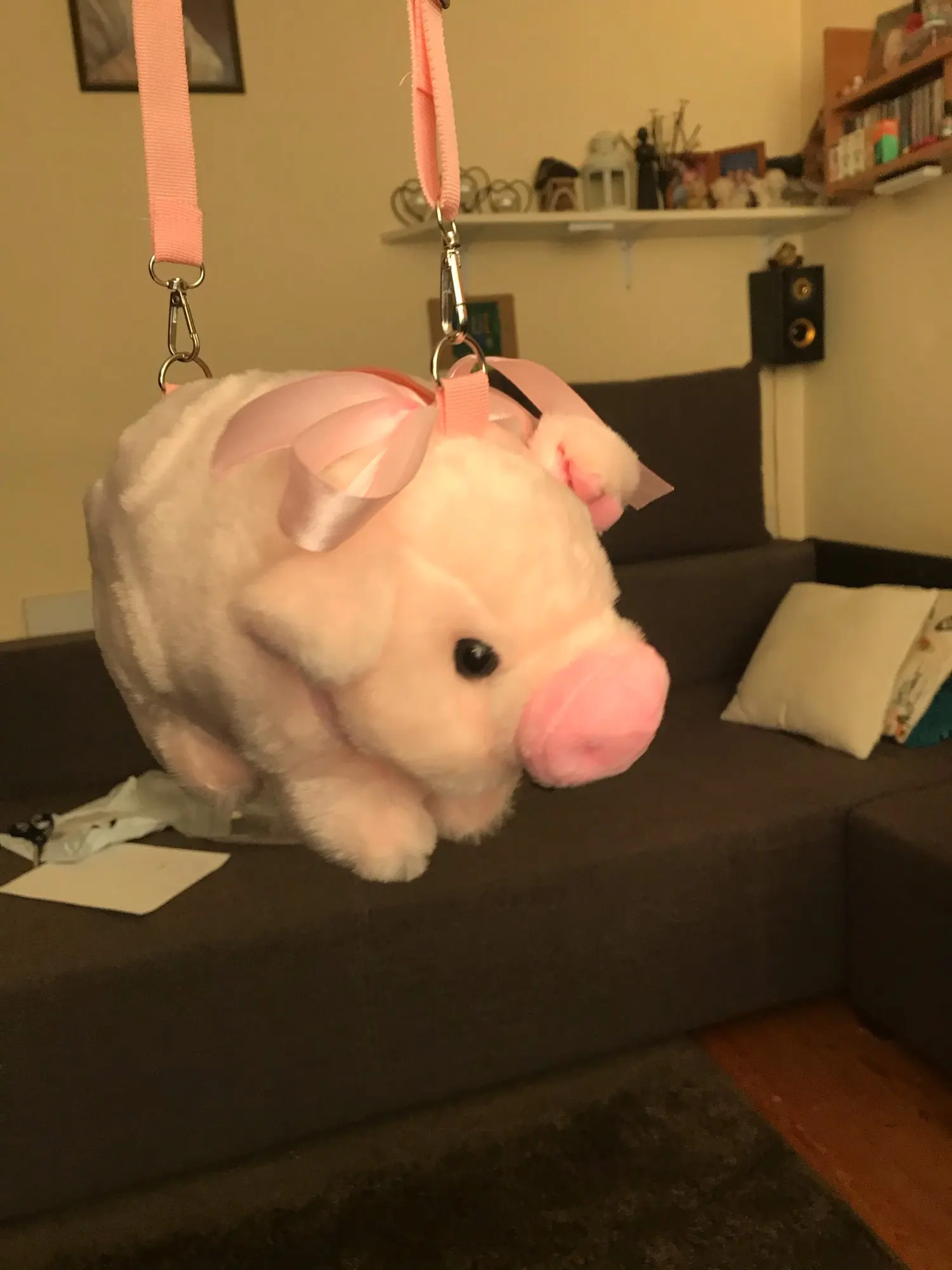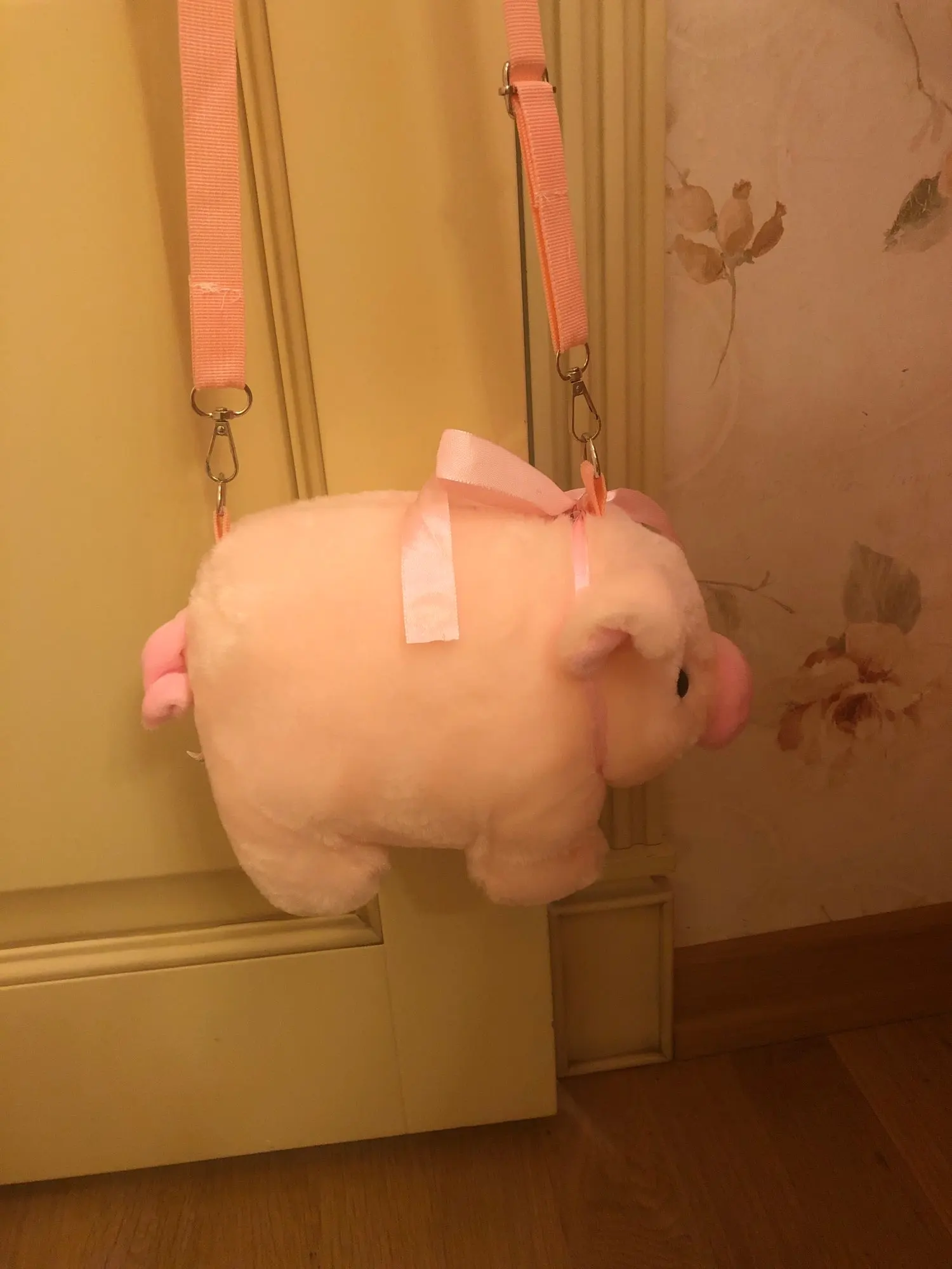 One of the best purchases I’ve made!!! Everything was packaged securely and the material is durable. The pig looks exactly how it is represented in the picture and description. the ribbon is a bit loose, so be careful when adjusting it and/or the strap. This handbag is very small and will not hold a large phone, however is perfect for wallet, keys, earbuds, etc. . Very cute, very soft, 100 percent worth the money. This item was also shipped very quickly! I know I sound like a bot, lol, but seriously— I highly recommend this cute little pig bag.