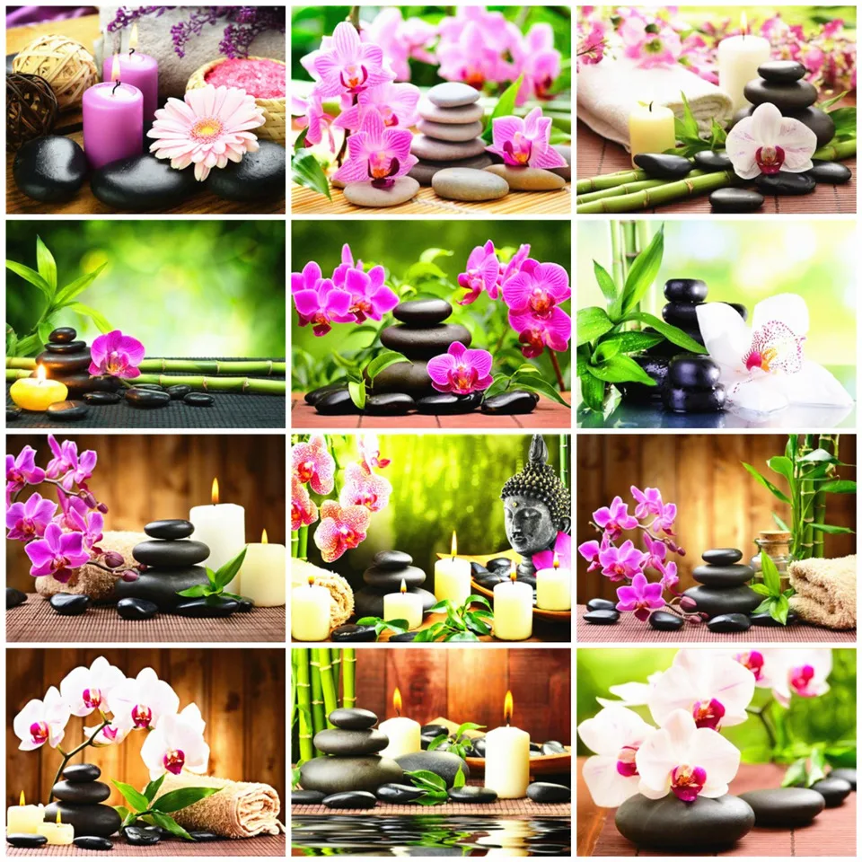 AZQSD алмазная живопись Орхидея Камень Свеча цветок мозаика картина...