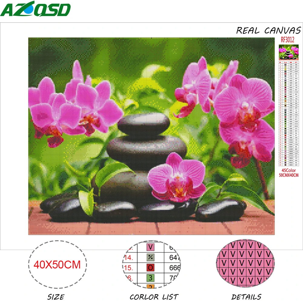 Название: AZQSD Алмазная вышивка, Орхидея, камень, стразы, алмазная живопись, цветок, вышивка крестиком, полная квадратная дрель, домашний декор, рукоделие