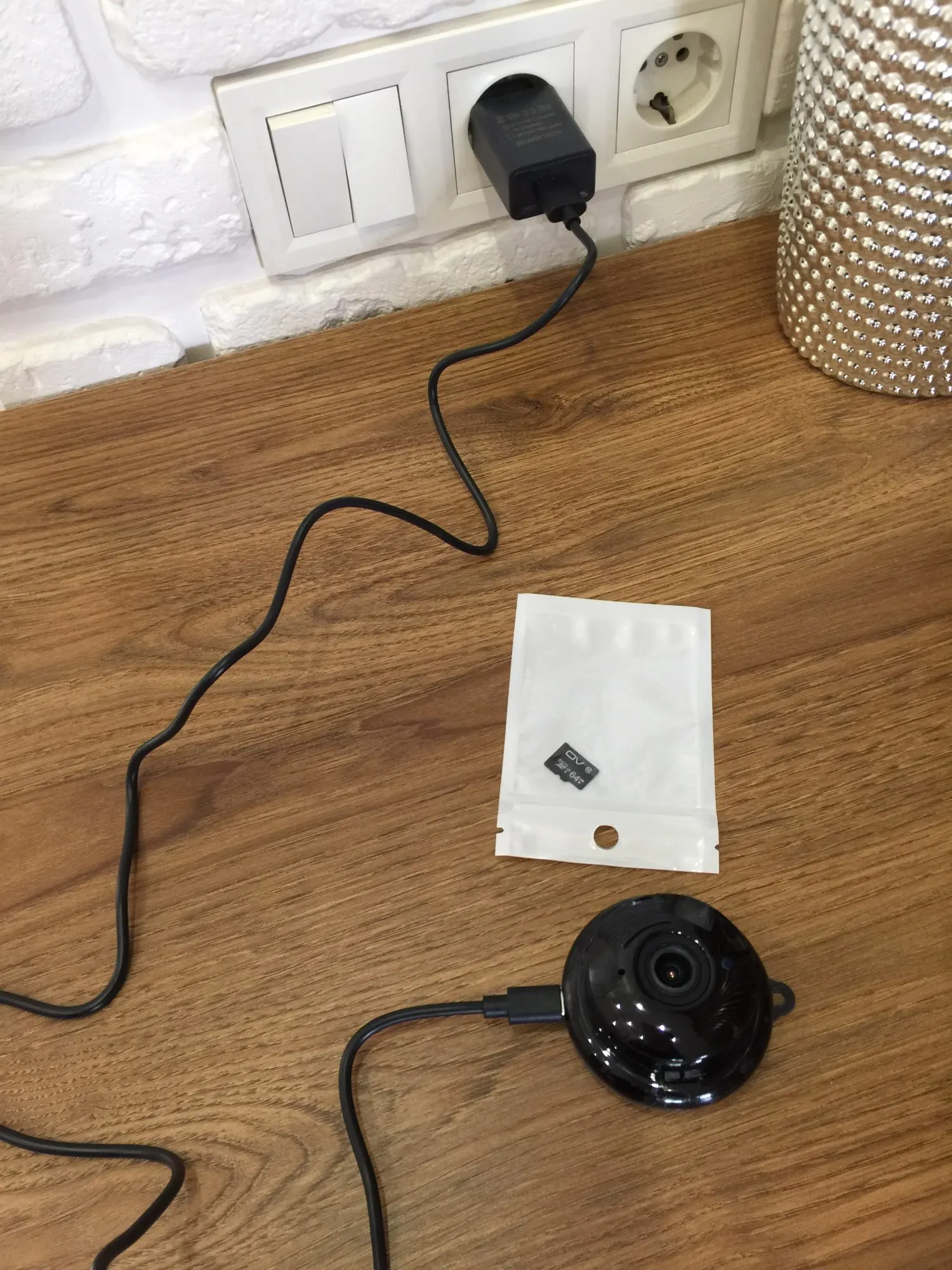 Шнур 1.2 - 1.4 метра всего, то есть до розетки не достанет.... Камера не большая. С приложением пока не разбирались. Дополню позже