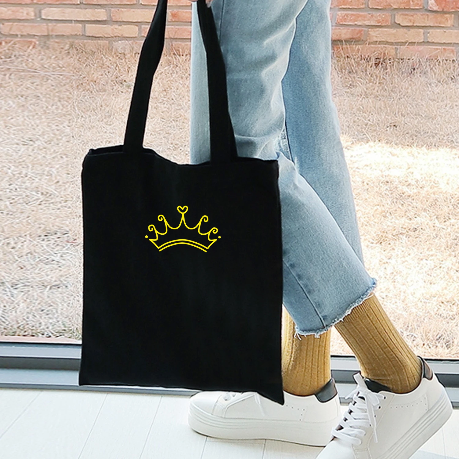 Флуоресцентная Европейская Женская холщовая Экологически чистая многоразовая сумка для покупок с принтом короны, складная сумка через плечо, школьные дорожные сумки, кавайные