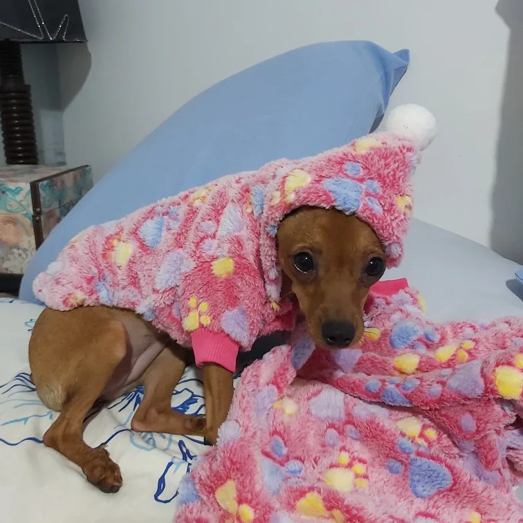 meu pinscher amou a ro6upinhas dele quando eu pegou se q se pedir para vestir quentinha ja tinha comprado ou mas ficou pequeno foi s mas essa ficou perfeito acho q n foi na mesma loja