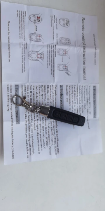 Фантастика!!! Он работает! У меня получилось. Всё по инструкции запрограммировалось. Обе кнопки от нескольких шлагбаумов как мне и нужно. Классный такой, миниатюрный. Кнопки резиновые, наверное надо лучше прожимать. Первый тест обход шлагбаумов показал, что реально срабатывают метров с 5. Посмотрим может и на расстояния побольше тоже могут. Абсолютно не критично, главное что всё подошло, и работает. На фото оригинал с чего клонировал.