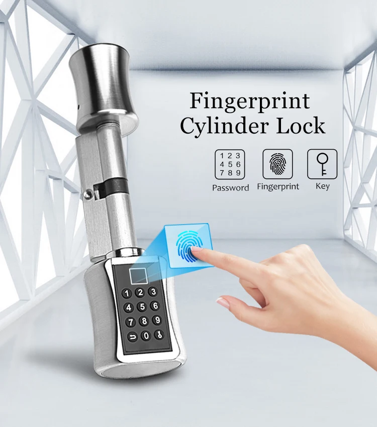 Биометрический умный цилиндрический замок с отпечатком пальца, Европейский электронный дверной замок с цифровой клавиатурой, замок без ключа для дома и квартиры