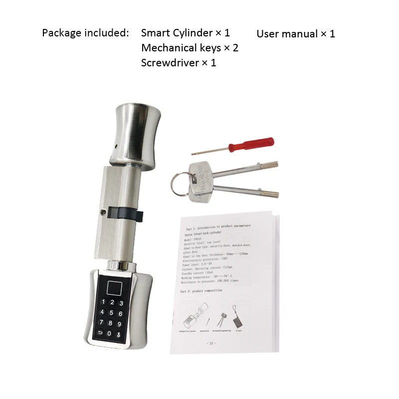 1 × цилиндр замка1 × Шестигранная отвертка1 × Страница руководства по установке2 × механический ключ