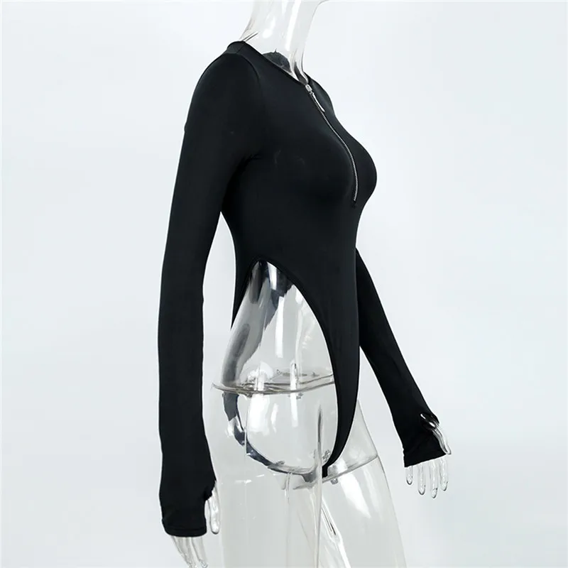 Сексуальный женский боди на молнии с длинным рукавом, Модный облега...