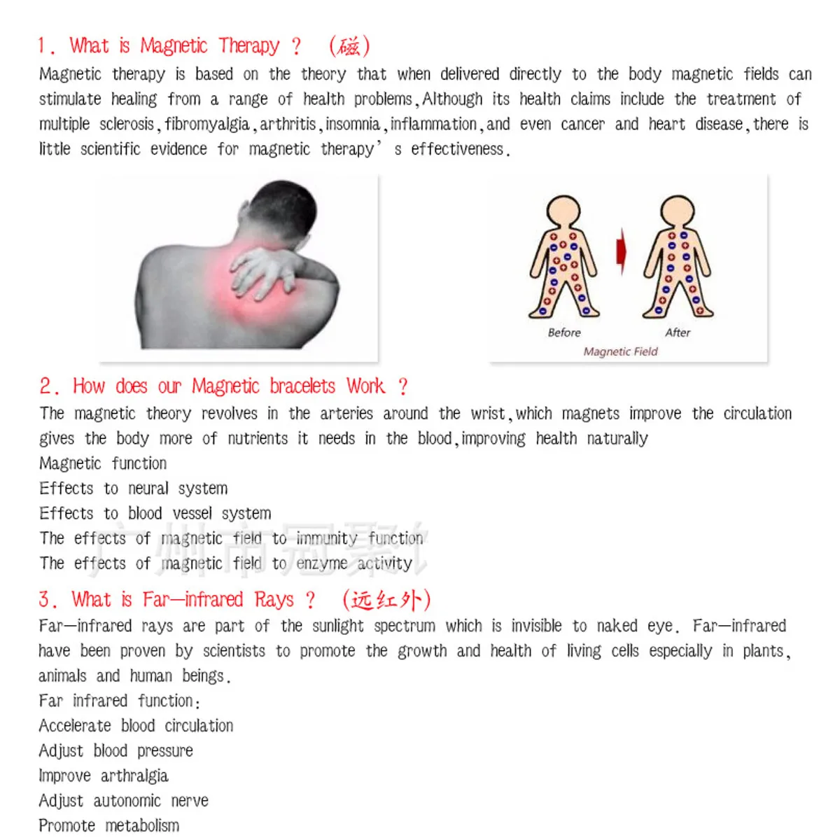 1. Дальняя инфракрасная излучательная способность Германий составляет 92.1%, его длина волны составляет 8-10 мкм, что является оптимальной частотой и длиной волны, которую могут поглощать люди. Дальний инфракрасный луч может глубоко проникать в наш организм, поглощая токсичные вещества и тяжелые металлы, а затем разлагает их. Это может помочь организму детоксикации и поддерживать жизненную силу.