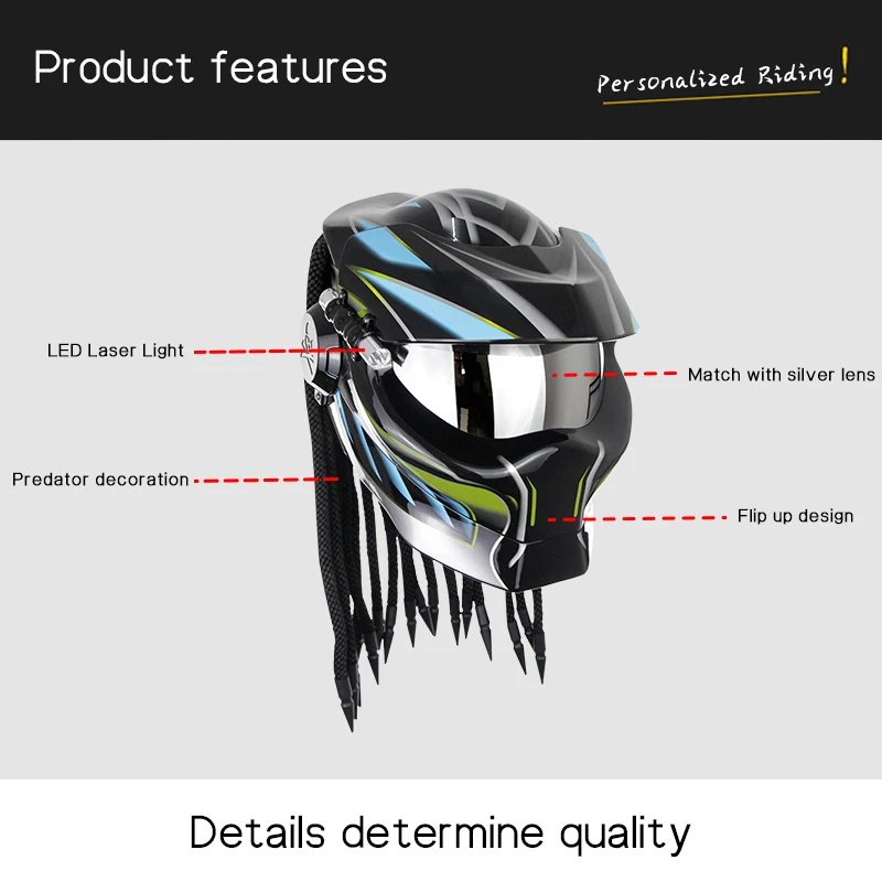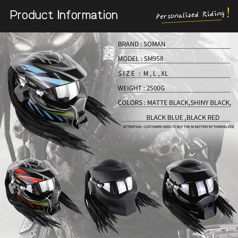 Мотоциклетный шлем хищника, шлем железного воина на все лицо, серти...