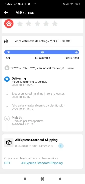 Страна: ES Доставка: Cainiao Standard For Special Goods 08.04.2021