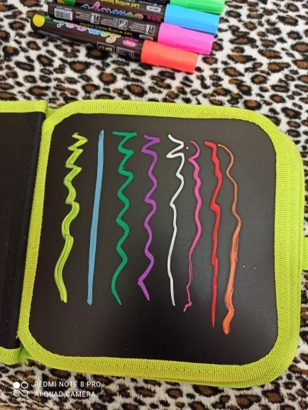 Фломастеры рисуют.. Они жидкие нужно хорошенько взбалтывать. Для начала использование многократные нажатие кончика. После высыхания эффект постели. Это для меня был сюрприз я думала о ней по типу перманентных. Самое неприятное что колпачки абсолютно не держится на фломастеры- они свободно болтаются. Для того чтобы увидеть результат ночью вам нужно ультрафиолетовая лампа То есть вам ее нужно найти и купить заранее Думаю не у всех завалялся ультрафиолет в доме. Обычная элоди лампа ничего не покажет. Ну они рисую эффект прикольный. Надеюсь мой отзыв будет кому-то полезен. Кстати краска после высыхания остается на ваших пальцах после касания. Чем покрывать такую работу чтобы сохранить я даже не знаю... Попробую побрызгать лаком для масла и акрила. Проэкспериментирую
