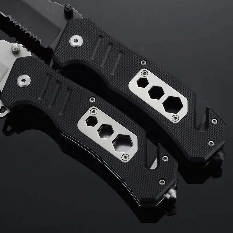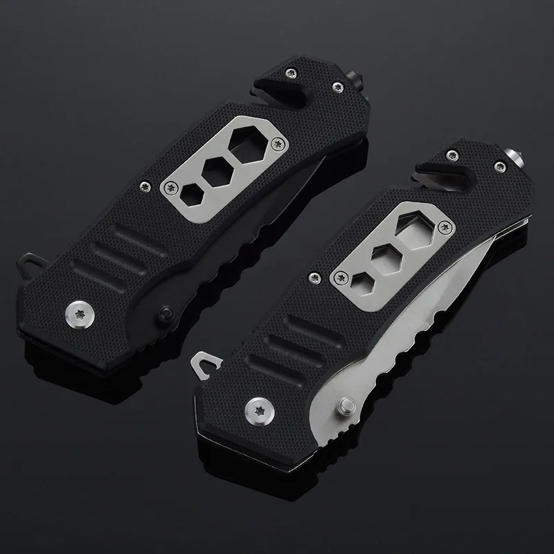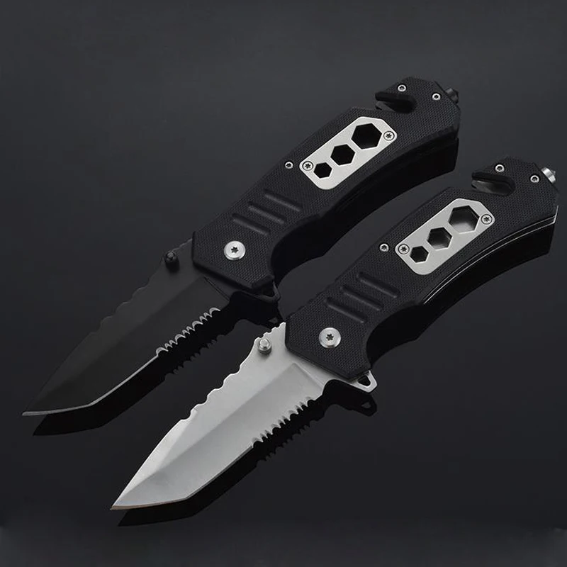 Складной карманный нож, 200 мм, функциональные тактические ножи для выживания, многофункциональный нож, уличный режущий инструмент, охотничий нож для защиты Общая длина: 200 мм Длина клинка: 85 мм Толщина клинка: 3 мм Ширина клинка: 30 мм Материал клинка: нержавеющая сталь 3Cr13 Материал ручки: материал G10 Твердость: 58HRC Посылка входит: 1 шт. * складной нож