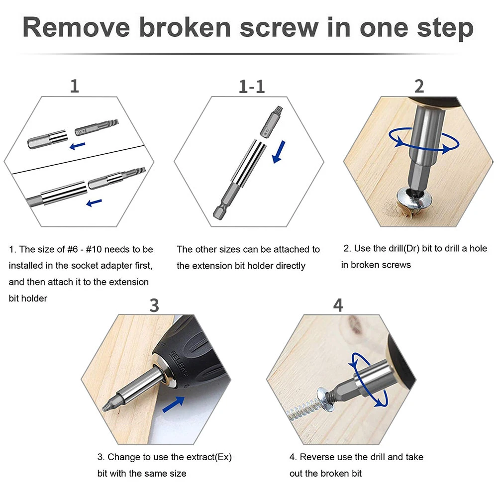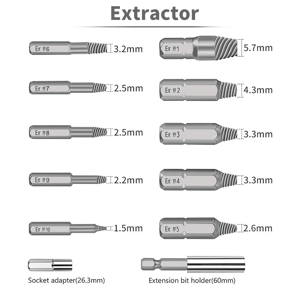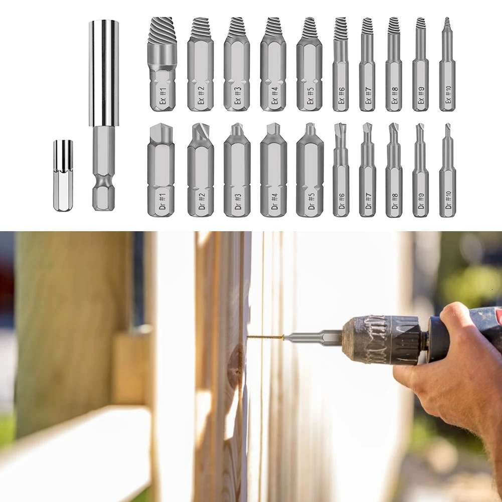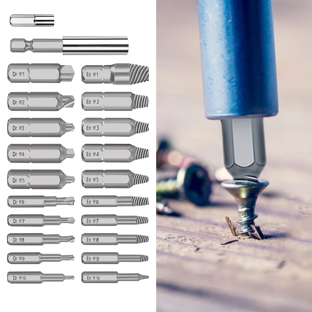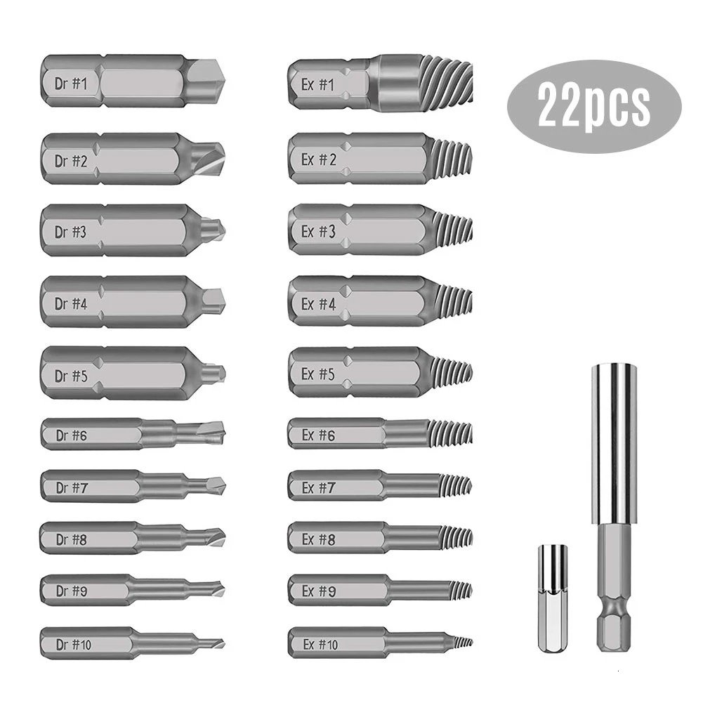 22 шт. материал поврежденный Винт экстрактор сверла направляющие набор сломанной скорости легко из болт шпилька полосатый инструмент для удаления винта B4
