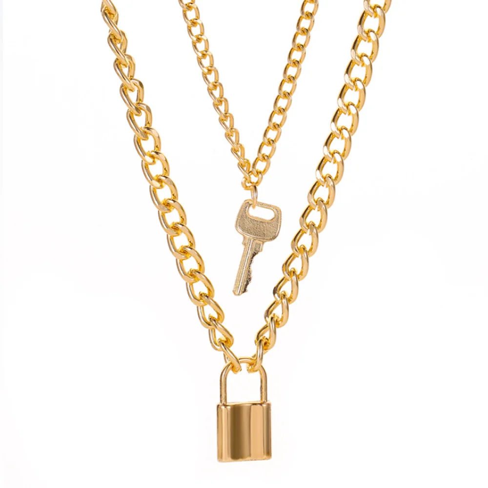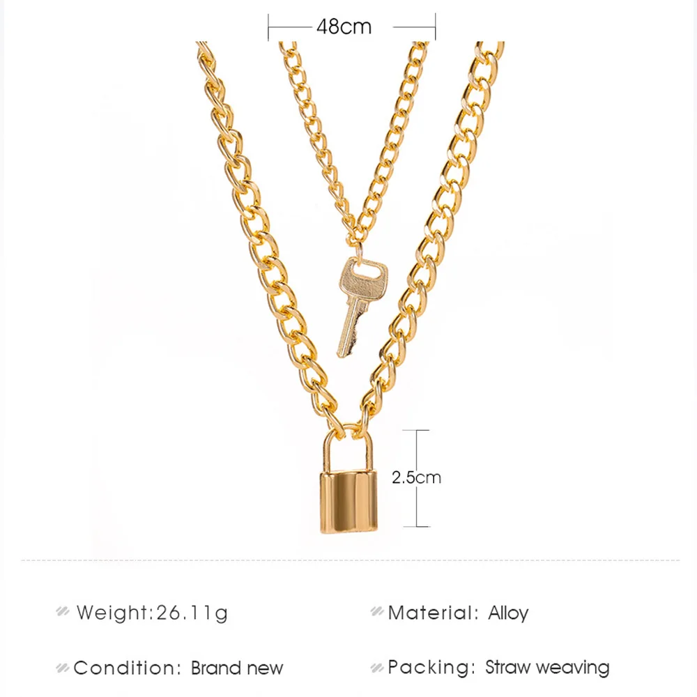 Двухслойное ожерелье с замком в стиле панк для женщин и мужчин, кулон серебряного цвета, массивное ожерелье, цепочка на шею, готические модные украшения