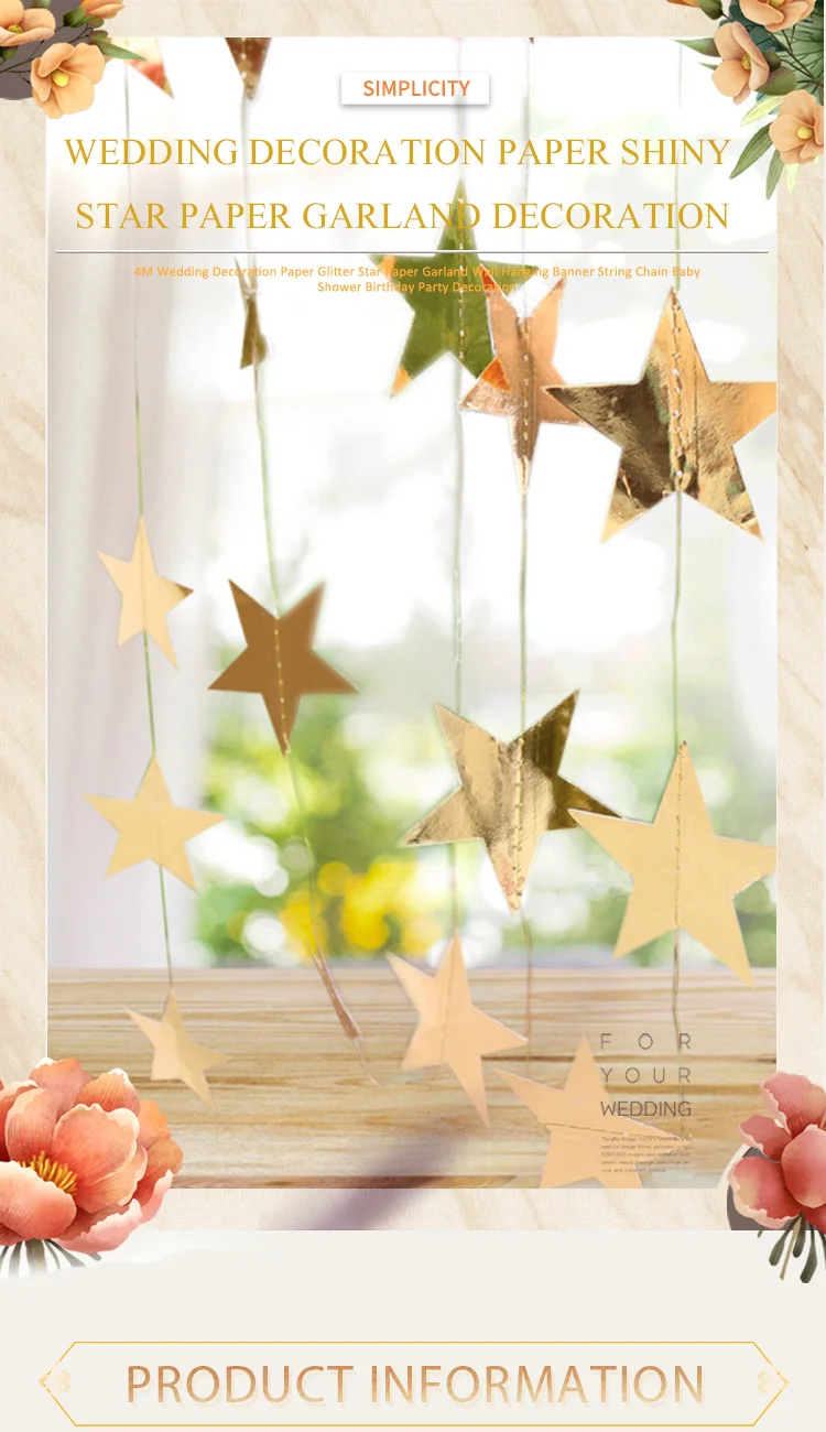 4 м свадебные украшения, Настенная бумага, блестящая Звезда, бумага, гирлянда, баннер, цепочка, вечерние украшения на день рождения, детский душ