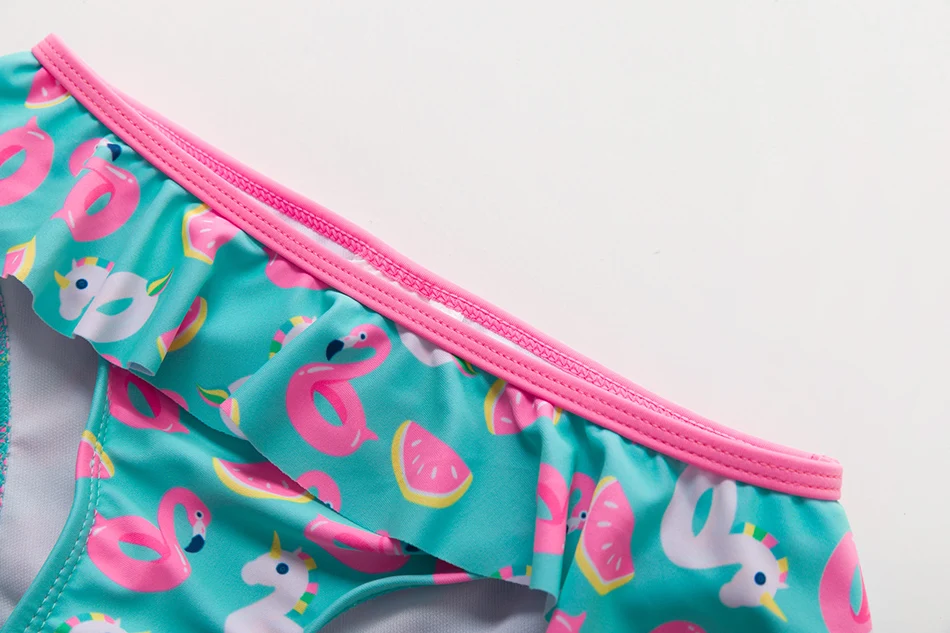 Купальник для девочек, одежда для плавания с принтом фламинго, комплект для плавания из двух предметов, с оборками, Пляжная wear-ST9032