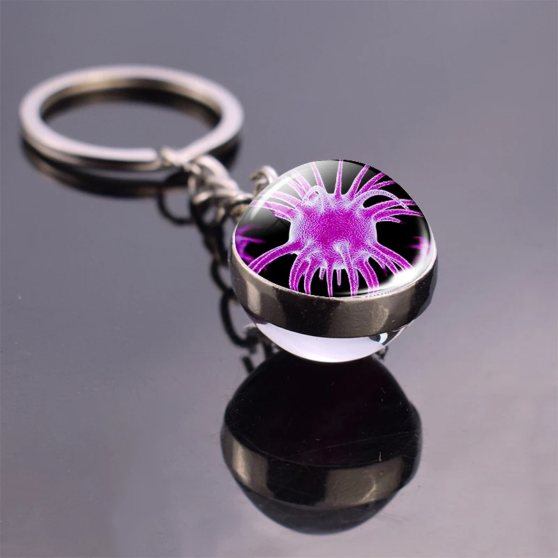 Брелок для ключей со стеклянным шариком, с биологическими клетками рака