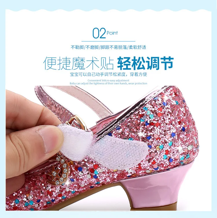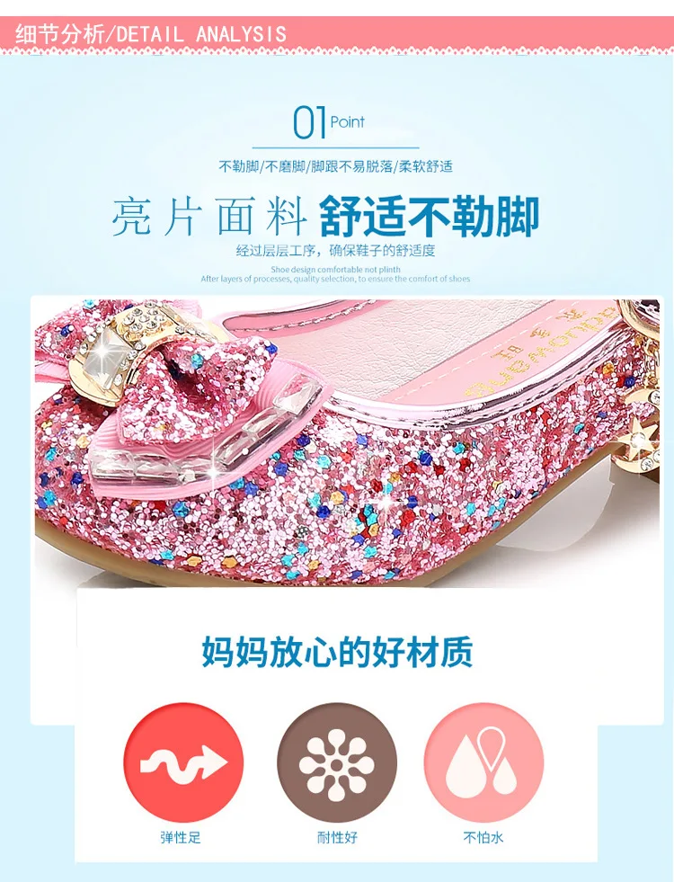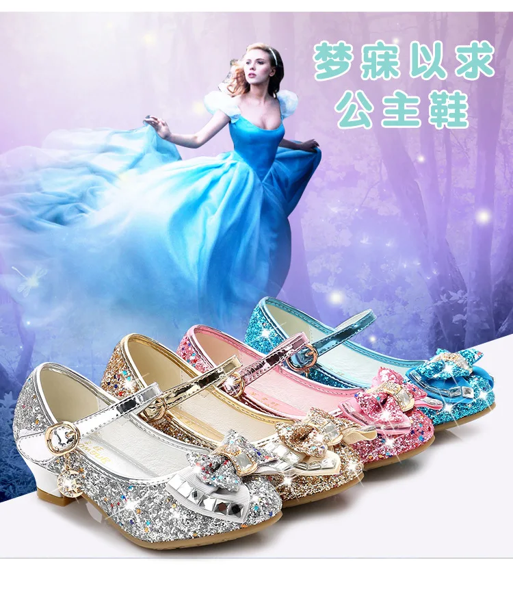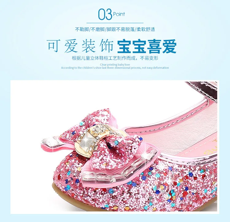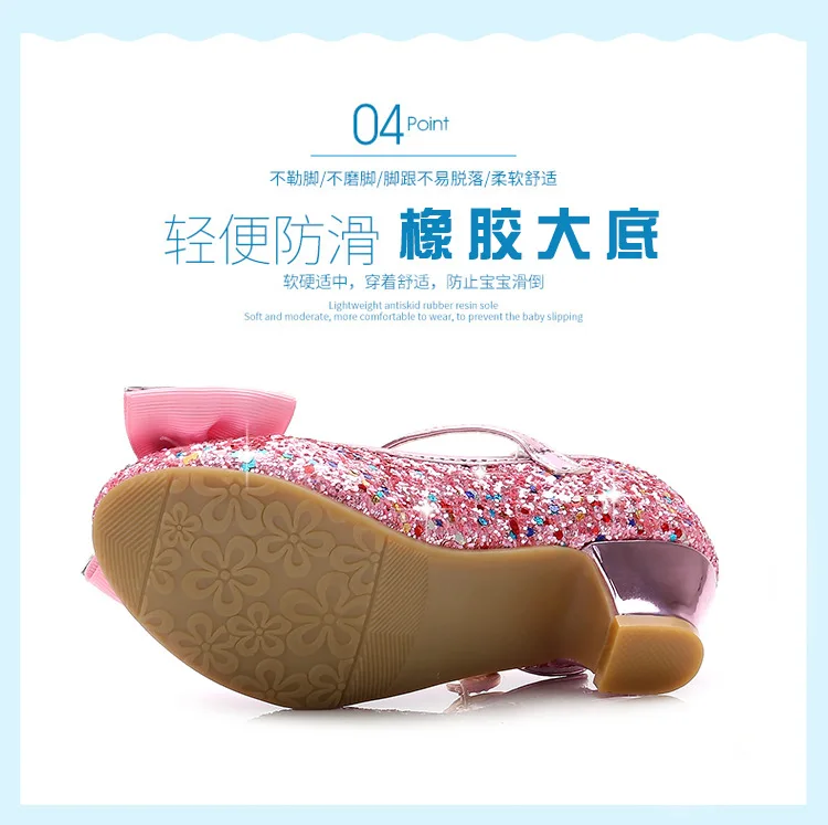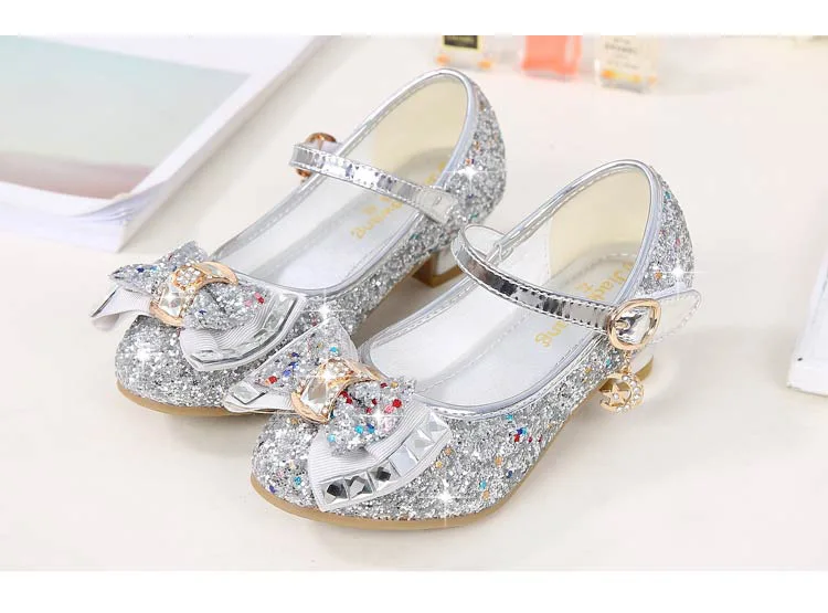 Детские блестящие туфли принцессы с кристаллами на высоком каблуке для девочек, детские сандалии, Классическая кожаная обувь, серебристые вечерние танцевальные свадебные туфли