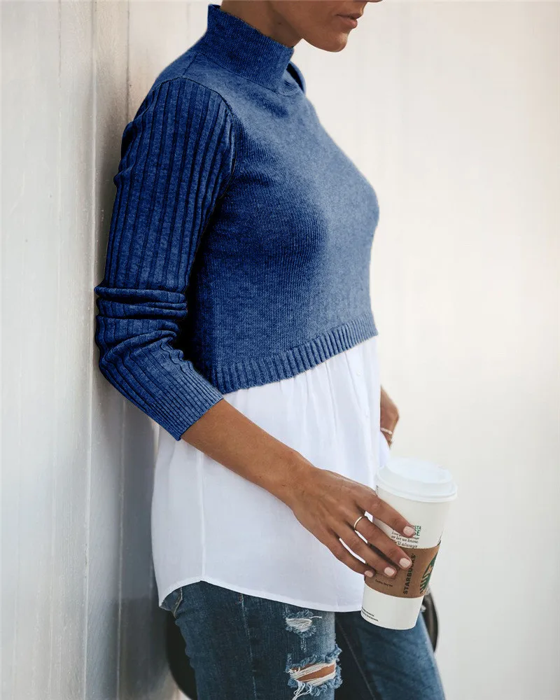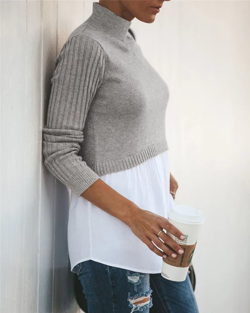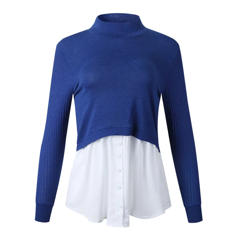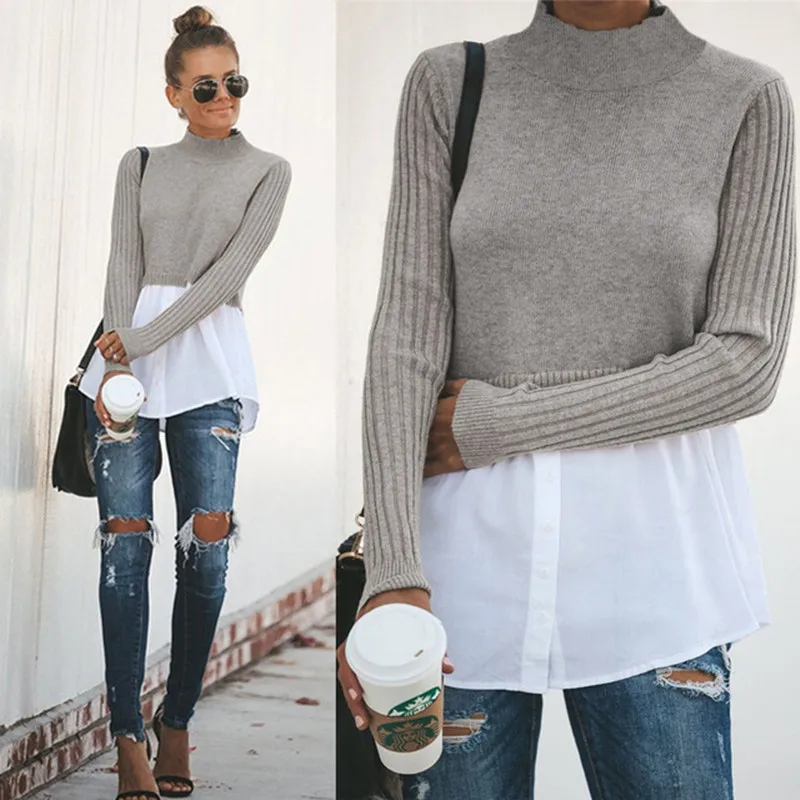 Модный сексуальный вязаный пуловер в стиле пэчворк с длинным рукавом, водолазка, осенне-зимний свитер на пуговицах, Тонкий Повседневный женский свитер, топ, Femme