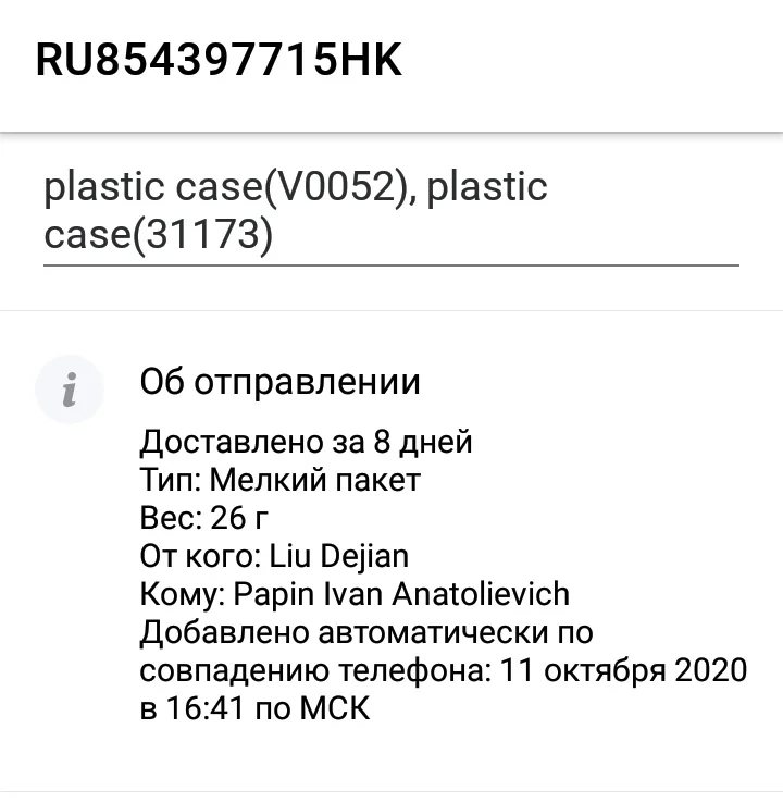 Страна: RU Color: for iphone Доставка: Cainiao Super Economy 15.10.2020