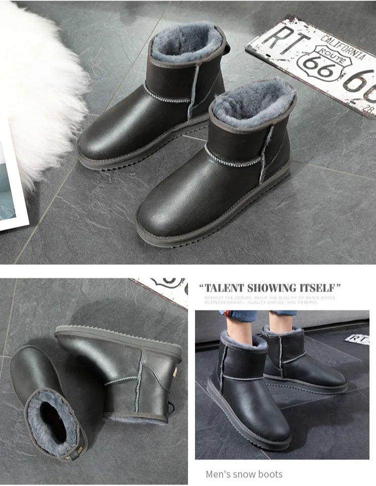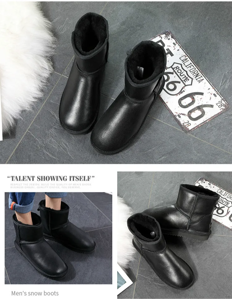 Модные водонепроницаемые мужские зимние ботинки из натуральной овечьей кожи, Зимние ботильоны из 100% натурального меха и шерсти, теплая зимняя обувь