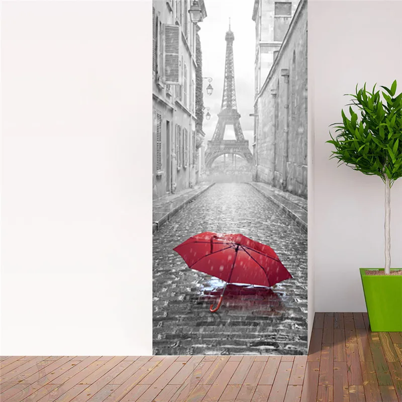Стикер Paris Зонт уличный для двери, модный дизайн, домашний ремонт, декоративные обои, большой размер, для кухни, ПВХ, наклейка на дверь