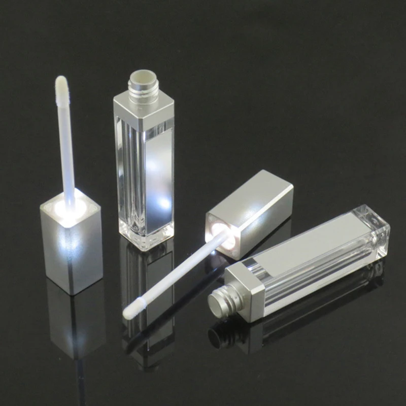 50 шт. 7 мл светодиодный светильник, серебряная Косметическая Помада, контейнер для макияжа, пластиковый квадратный консилер, бутылка, блеск для губ, трубка с зеркалом