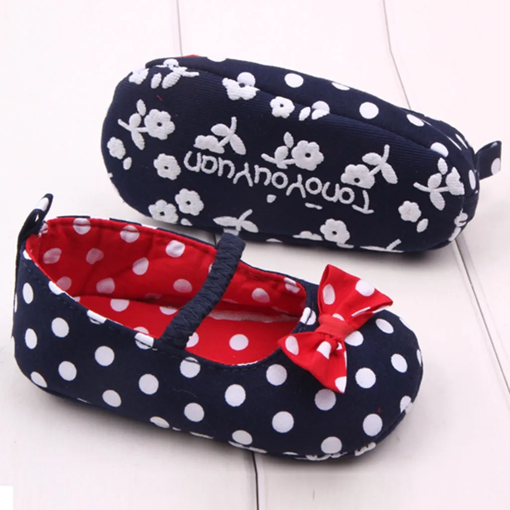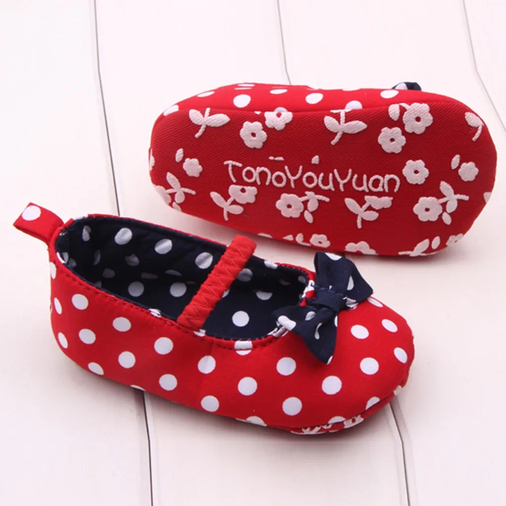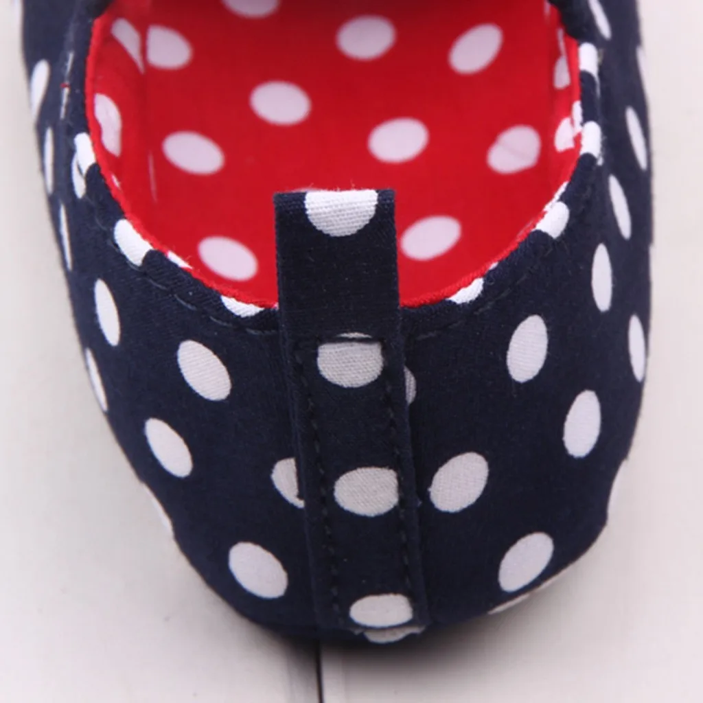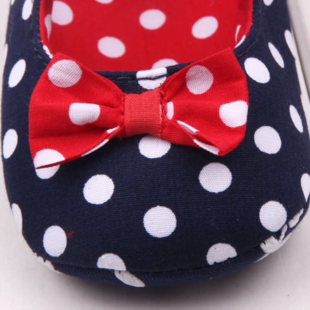 Обувь для новорожденных девочек с бантом в горошек; Нескользящая обувь для первых шагов; Обувь на мягкой подошве
