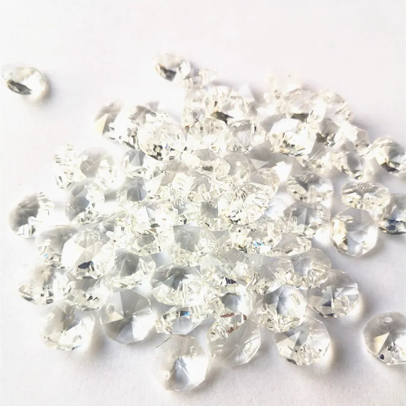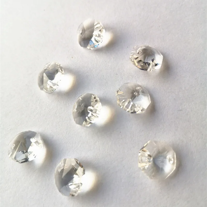Высококачественные Восьмиугольные бусины для люстры из прозрачного кристалла 200 шт. 10 мм, свадебные бусины с двумя отверстиями, цепочки, украшения для рождественской елки своими руками