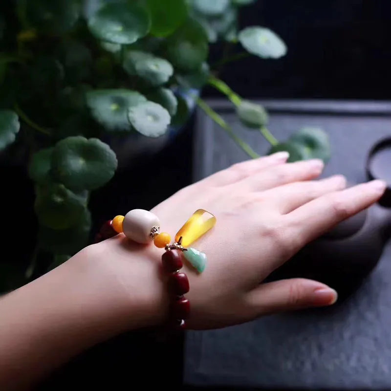 Uglyless эластичный веревочный деревянный браслет для женщин Янтарный брикет браслет сандаловое дерево бусины браслеты драгоценные камни ювелирные изделия BR314