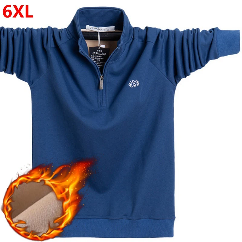 Зимняя рубашка-поло с длинным рукавом плюс бархатная очень большого размера 6XL Толстая рубашка-поло на молнии 5XL