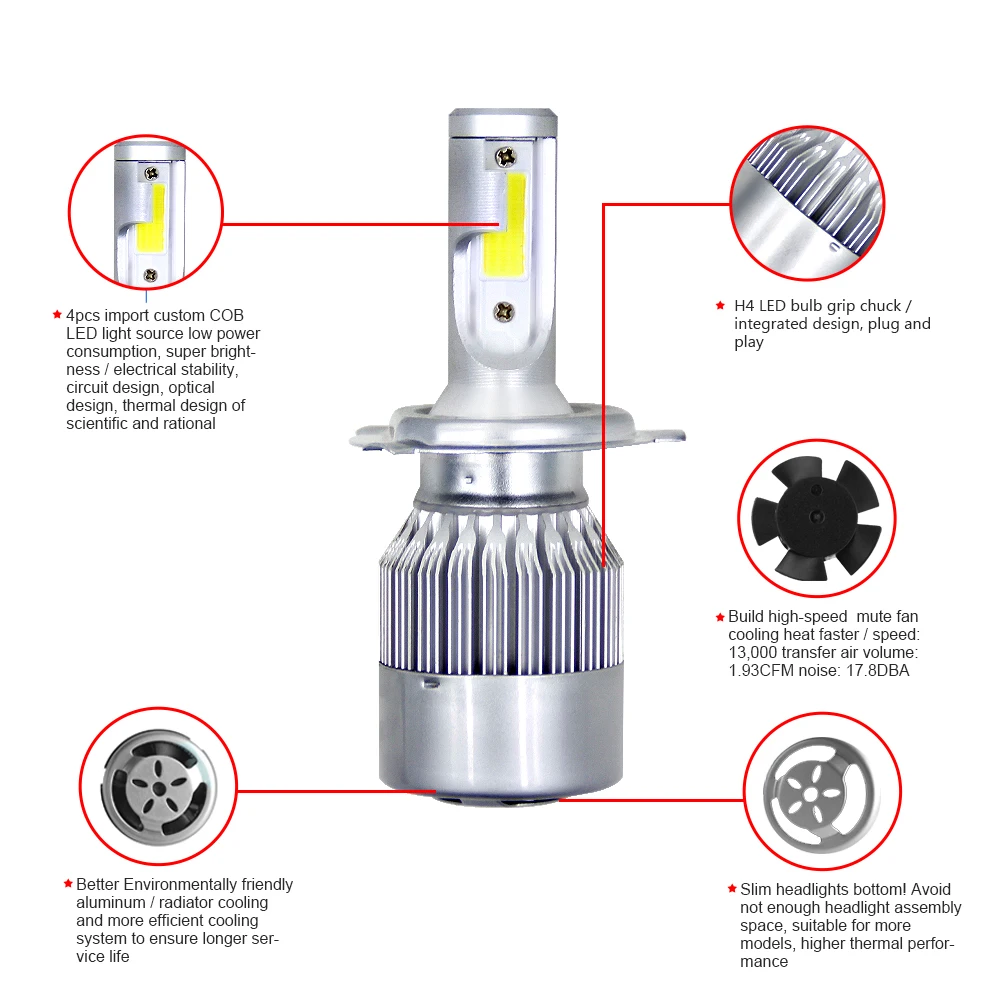 Советы: Наш светодиодный фонарь подходит для большинства автомобилей в мире. Некоторые автомобильные бренды и модели обновляют светодиодный фонарь, необходимо приобрести Дополнительный декодер CANBUS (Mini; Volvo; Jeep Compass; New LaVida; BMW X1; Mercedes Benz B; Chrysler Cruiser; ect), Пожалуйста, поймите, нужен ли вашему автомобилю декодер CANBUS, а затем разместите заказы (кроме CANBUS с светодиодный подсветкой). Автомобиль должен декодировать или адаптер лампы, пожалуйста, прочитайте следующее: Светодиодный фары не работают? После того, как вы установите наш светодиодный светильник, если возникают проблемы ниже, включая: 1. Лампочка-светильник 2. Предупреждение об ошибке на ПК 3. Оба света не могут быть яркими 4. Один или два лампы светильник на некоторое время, затем выключается 5. Лампочка имеет тусклые огни после того, как вы отключите лампу 6. Оригинальный DRL или боковой стояночный светильник не может быть установлен после того, как вы наденете светильник на головную лампу и т. Д. Эти проблемы показывают, что наши лампы могут работать хорошо, вам просто нужен светодиодный декодер или светодиодный резистор, чтобы соответствовать вашим автомобильным фарам. В основном, немецким автомобилям нужен декодер CANBUS. Доставка: Мы отправим его как можно скорее после оплаты вашего заказа. Информация об отслеживании будет обновлена в Интернете в течение 3-7 дней после того, как мы отправим посылку. Гарантия: 1 год гарантии на дефектные изделия (за исключением предметов, поврежденных и/или неправильно использованных после получения). Параметр Светодиодный чип: COB Количество СВЕТОДИОДНЫЙ: 4 шт. (каждая лампа имеет две чипы) Потребляемая мощность: DC6V-36V транспортных средств Ток: 3.0A (макс.) Режим охлаждения: вентилятор Turbo cool Мощность: 110 Вт/комплект (55 Вт/каждая лампа) Люмен: 9200лм/комплект (6000лм/каждая лампа) Луч ангела: 360 ° Срок службы:> 50000 часов Уровень водонепроницаемости: IP65 Теория рассеивания тепла: авиационный алюминий 6063T5, включая турбо-вентилятор Доступные цвета: 6000K-чистый белый Посылка: 2x C6 светодиодный фонарь