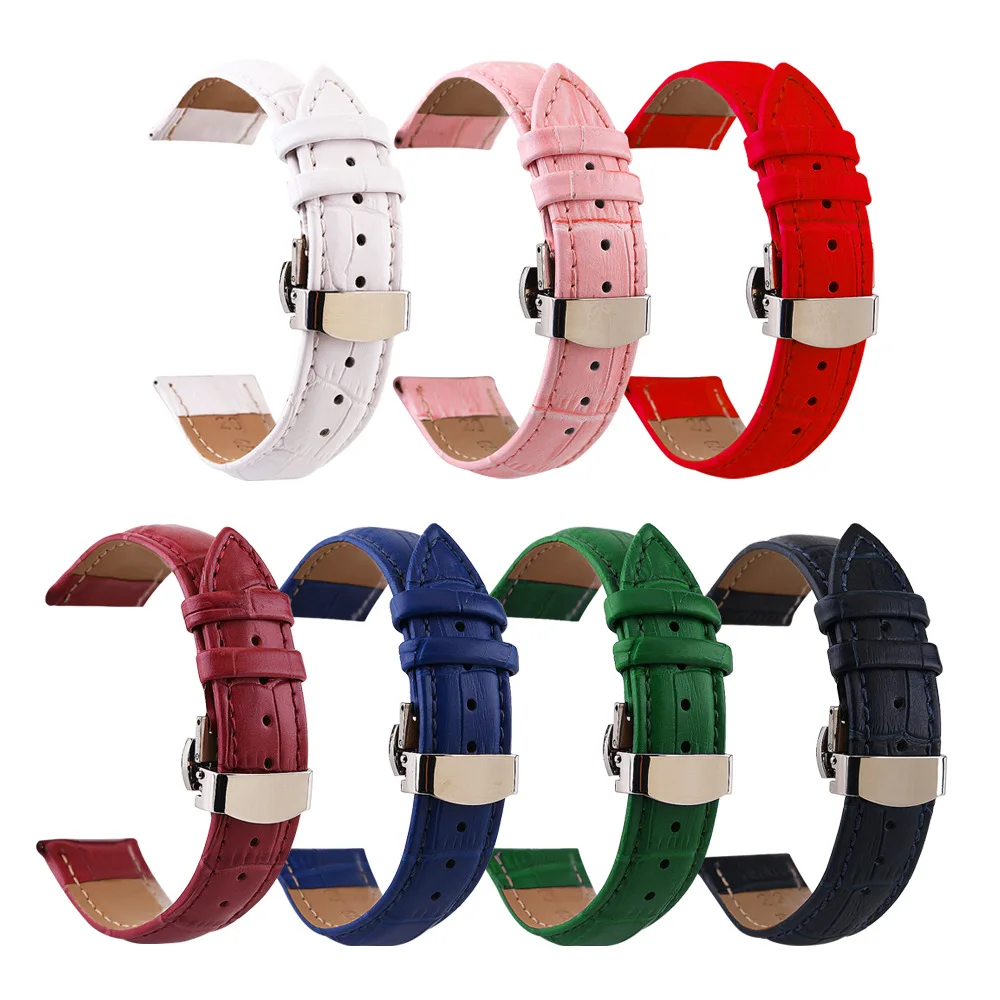 Ремешок для часов из натуральной кожи, аксессуары для часов для женщин, Зеленый Красный Розовый Белый, 10 мм 12 мм 18 мм 20 мм 14 мм 16 мм 19 мм 22 мм