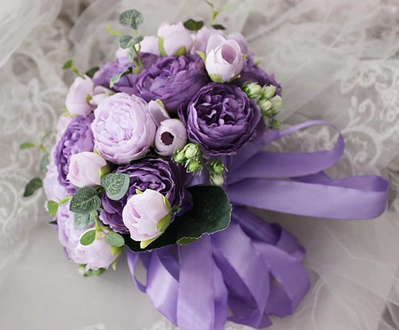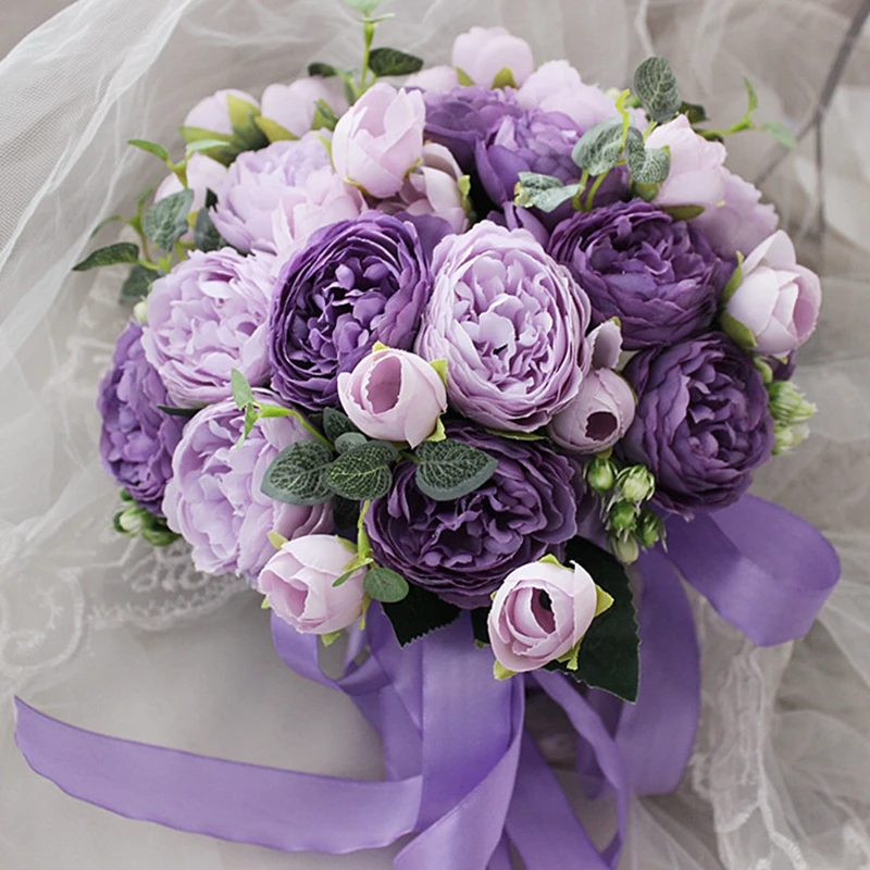 Фиолетовый пион Свадебные букеты Свадебные цветы Искусственный Свадебный букет De Mariage Роза