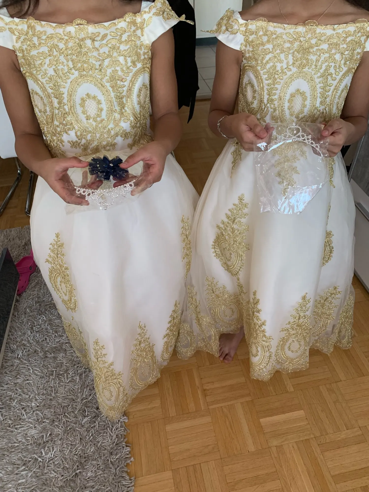 Вау! Вау! Качество платья безупречно. Размер хорошо и это действительно красиво. Мои дочери и племянница очень счастливы. Спасибо за предоставленную корону для каждого платья и заколки. Быстрая доставка. Спасибо продавцу за его доброту.