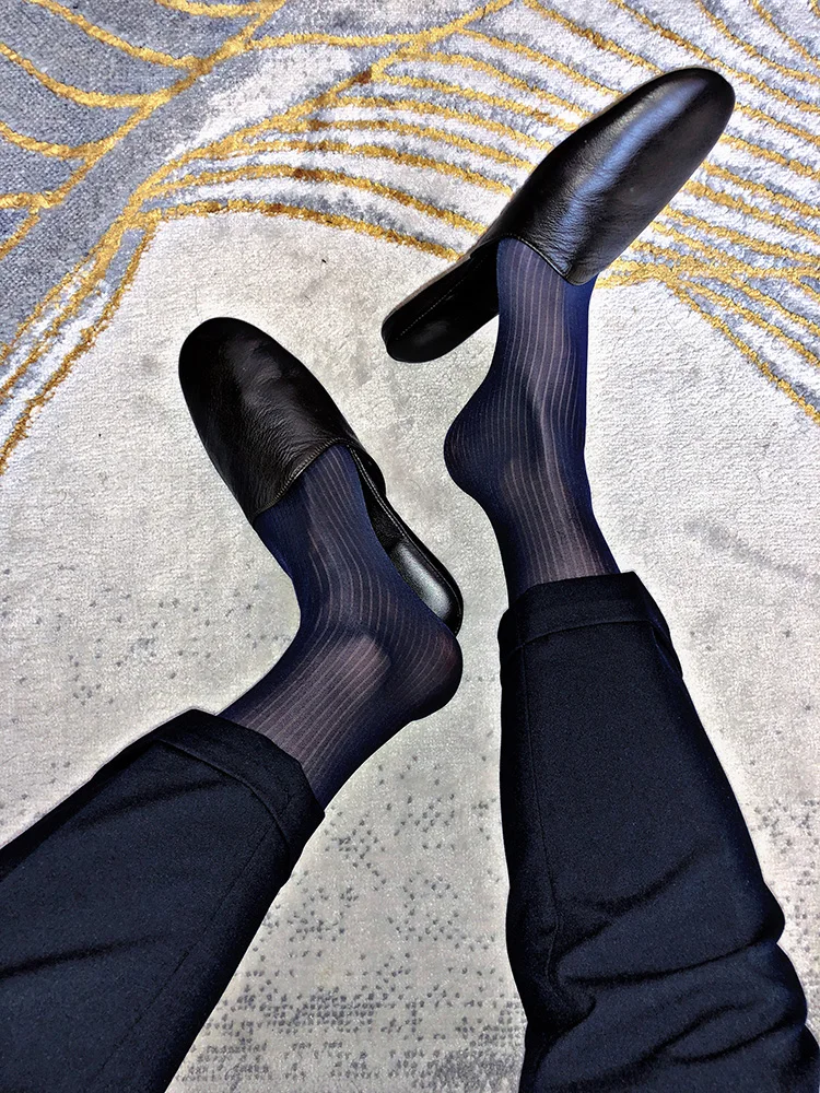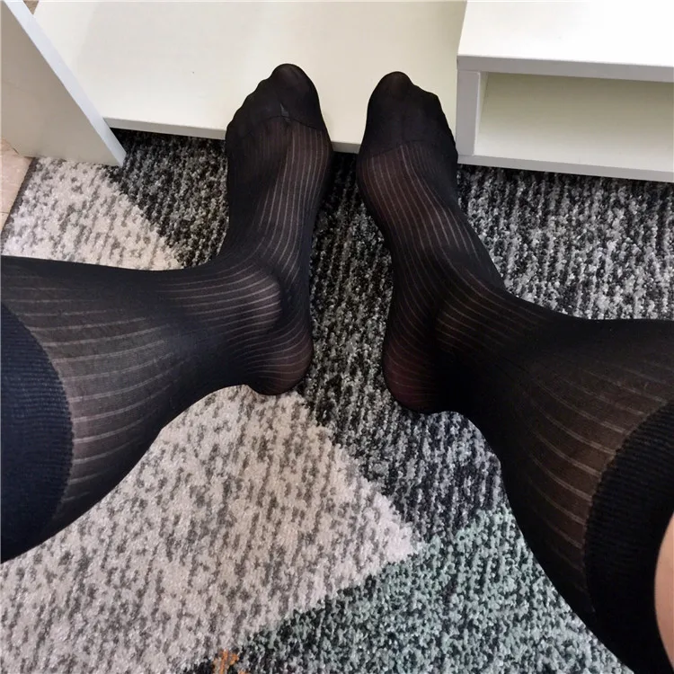 Носки-трубы экзотическая Деловая одежда прозрачные носки костюм мужские сексуальные ультратонкие мужские деловые костюмы-трубы в полоску мужские чулки