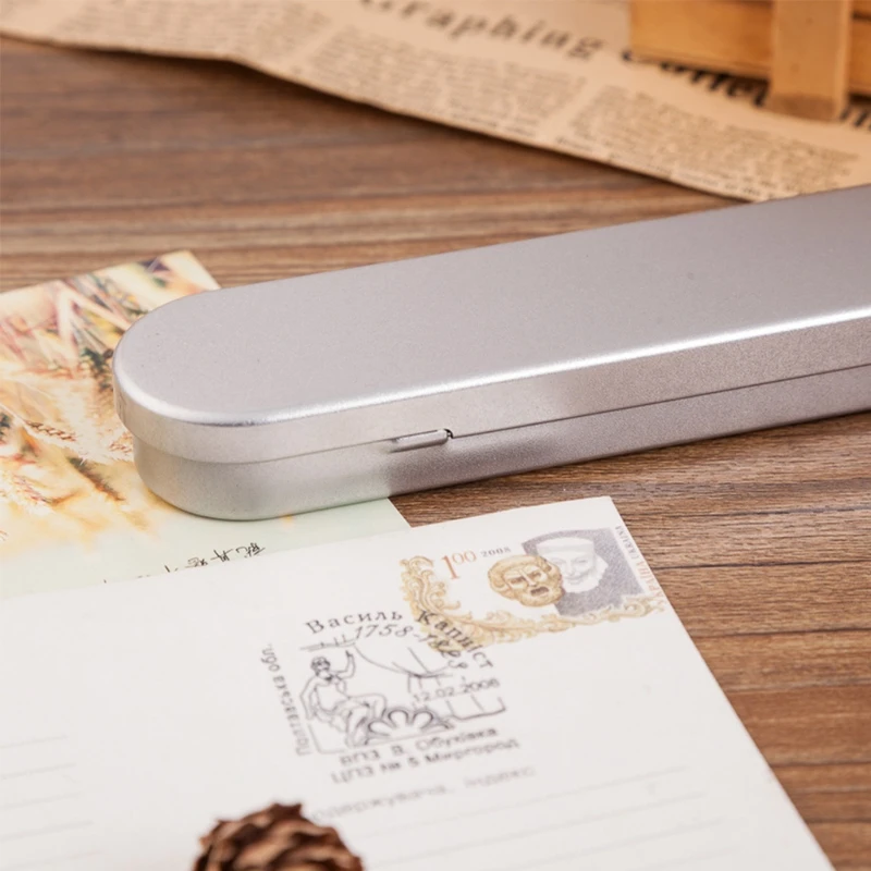Серебряный оловянный Карандаш Чехол ручка коробка для хранения канц...