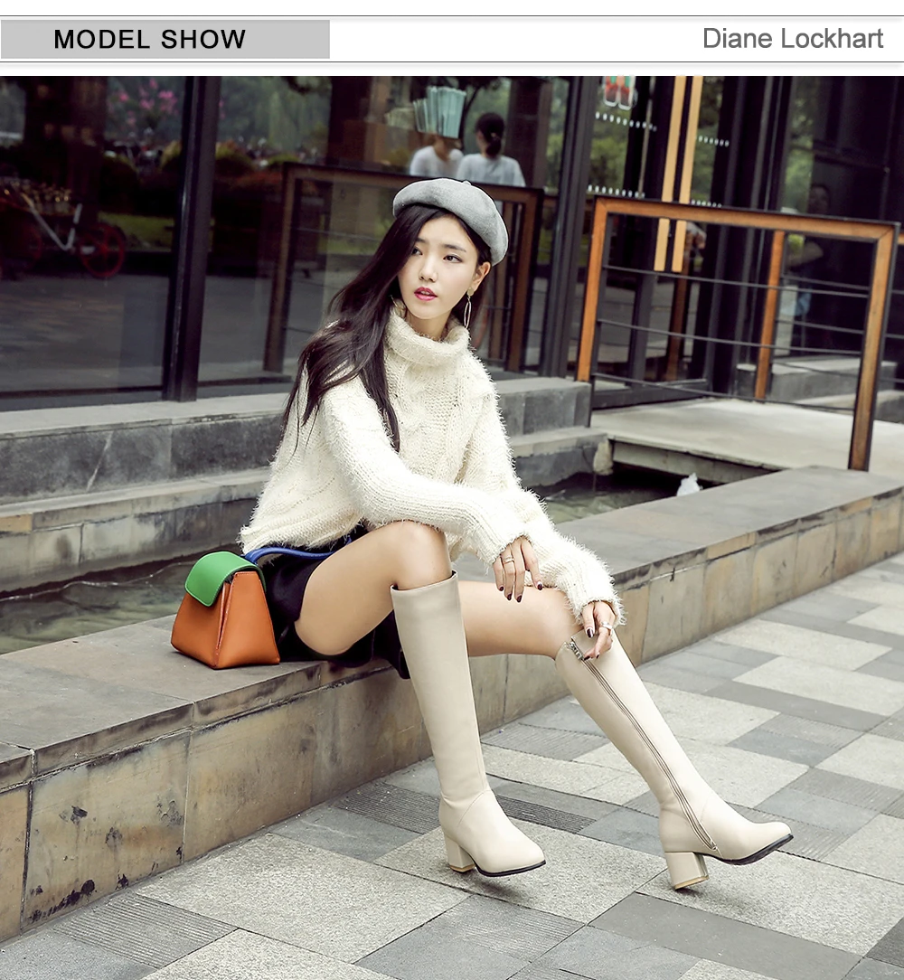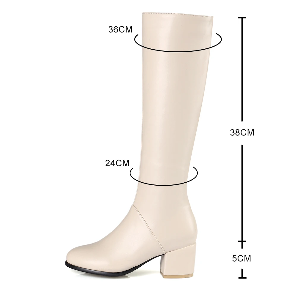 Сапоги женские из искусственной кожи, на молнии сбоку, однотонные, для верховой езды, зима, размера плюс