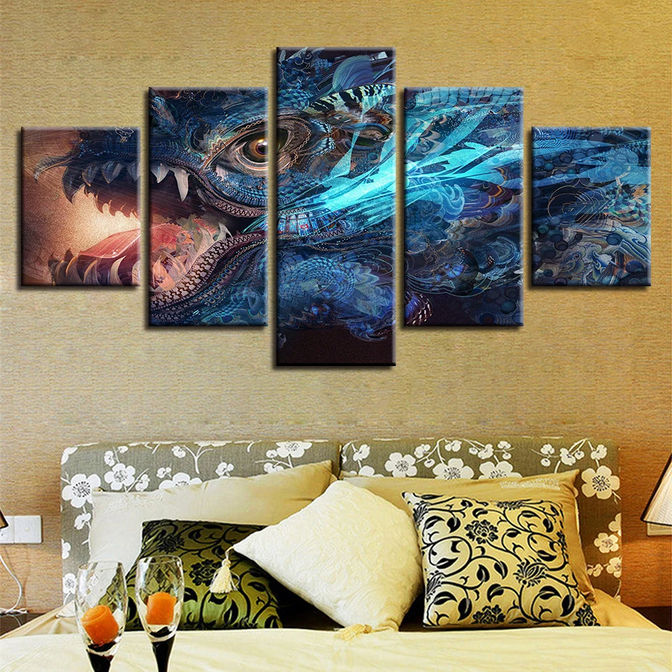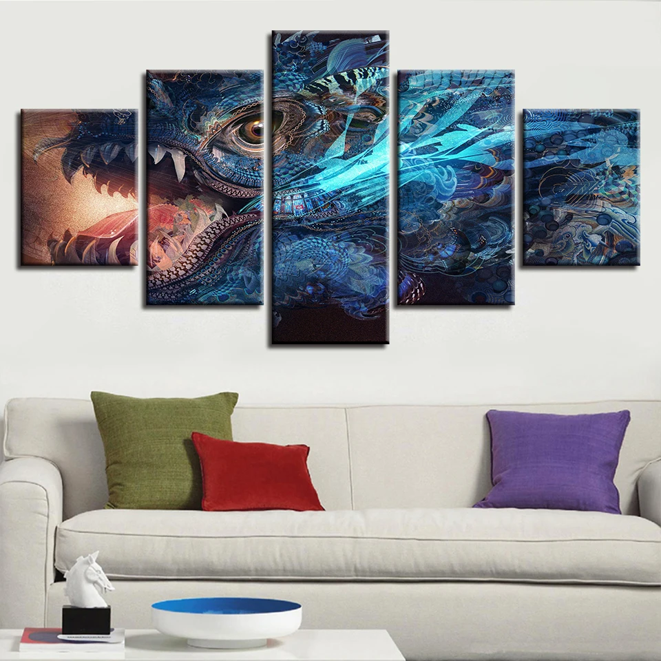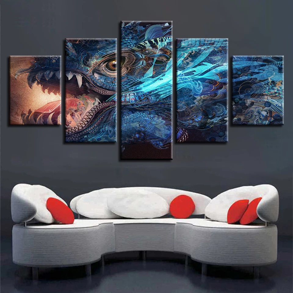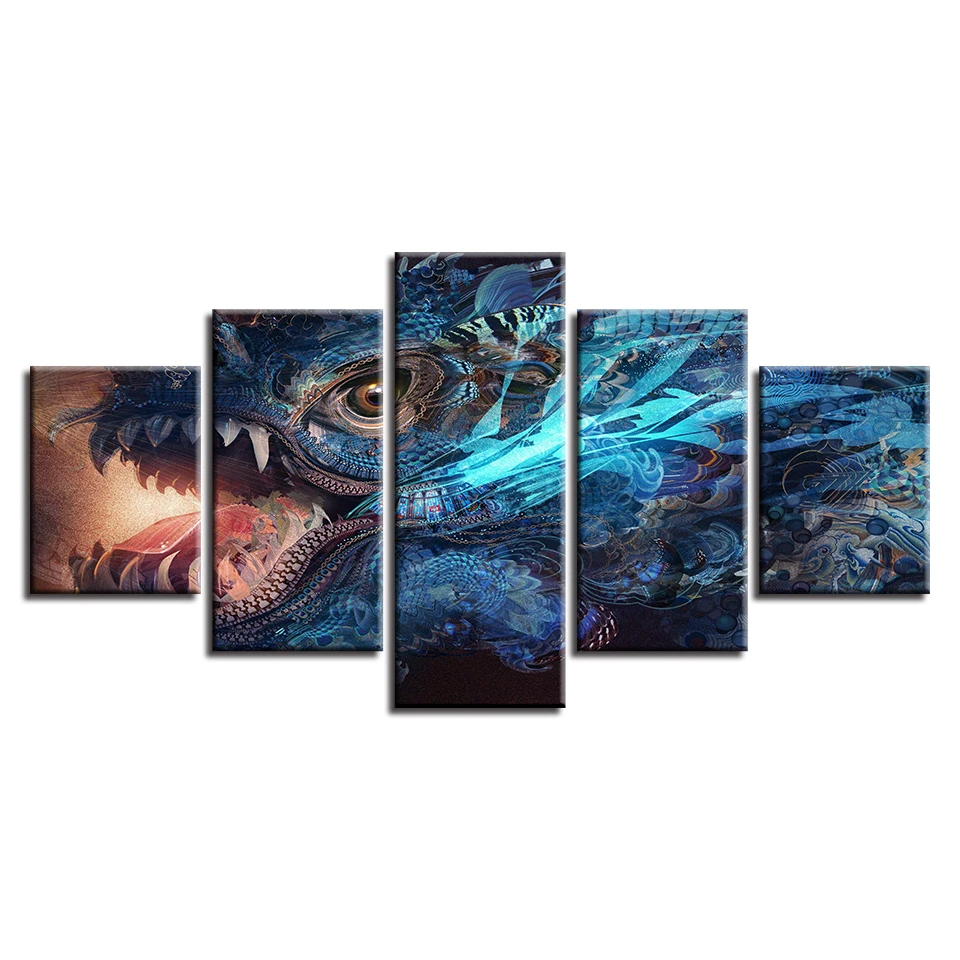 Украшение для гостиной, современный 5 шт., HD печать, животные, дракон, живопись, постер, модульные фотографии, рамки для холста, настенное искусство