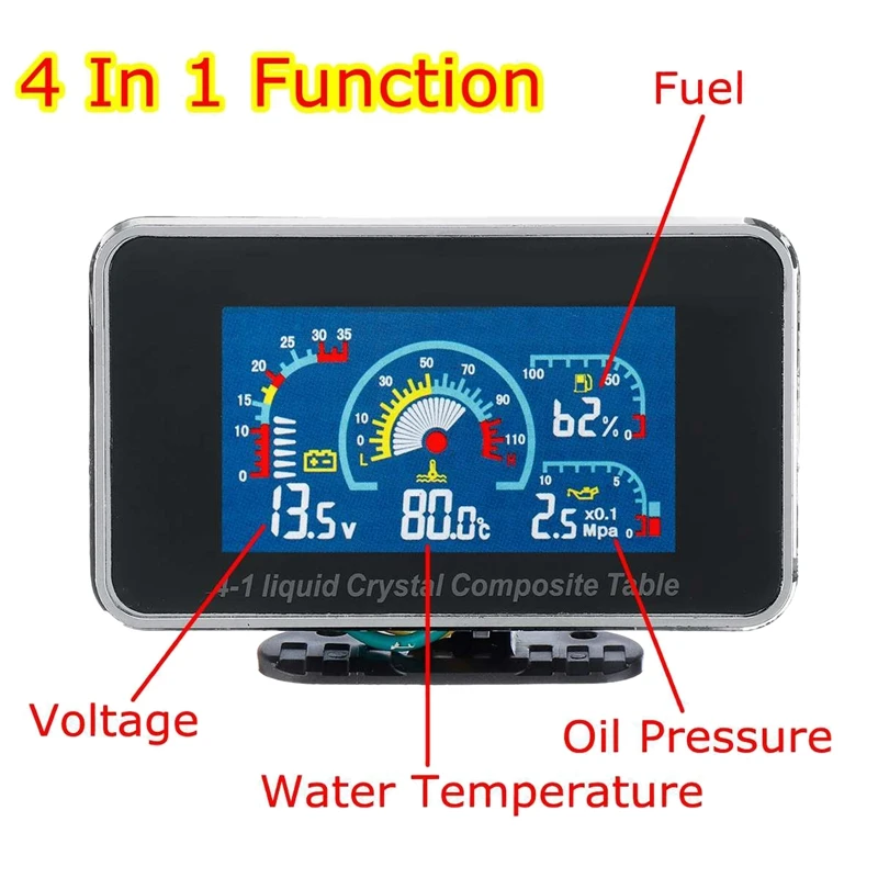 С цифровым дисплеем, интуитивно понятное наблюдение.Точность и стабильность отображения параметров, низкое энергопотребление.Стабильная производительность. Защита от встряхивания, вибрации и ударов.Простая установка.4 в 1 ЖК-дисплей Автомобильный цифровой датчик сигнализации Вольтметр/давление масла/топливо/температура воды 12-24 ВНазвание: Автомобильный ЖК-дисплей 4 в 1 (датчики температуры воды/давления масла/топлива/напряжения)Размер продукта: 9,5x6,3x3,2 смИсточник питания: 9 В-40 В постоянного токаРабочая температура: -40 - 50 ℃Рабочая влажность: 45%-75% относительной влажностиВинт Датчика Температуры: м10Датчик давления масла: 1/8 NPTТестовые параметры:Тест напряжения: 9-35 в, Точность: ± 0.5%, сигнал тревоги: менее 10,5 В/14,5-21,5 в/более 29 вТест температуры воды: 0-110 ℃, Точность: ± 0.1%, сигнал тревоги: более 96 ℃Тест топлива: 0-0.1% МПа, Точность: ±, сигнал тревоги: менее или равно МПаТест давления масла: 5-1000Ω, начисление: ± 1%, сигнал тревоги: более 10%Применение:Подходит для автомобилей, мотоциклов или по вашему желанию!Объект измерения костюма: сжатый воздух, маслоЦвет: черныйМатериал: пластикПосылка1 Калибр1 датчик температуры1 датчик давления масла2 комплекта кабеляВ комплект входит только указанное выше содержимое, другие продукты в комплект не входят.Примечание: светильник вая съемка и различные дисплеи могут привести к тому, что цвет товара на изображении будет немного отличаться от реального. Допустимая погрешность измерения +/- 1-3 см.